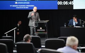 Reitor do Unibave utiliza a tribuna da Alesc, durante o Programa Alesc Itinerante em Criciúma