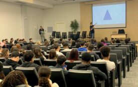 Coordenador do curso do Unibave palestra para alunos de ensino médio em Braço do Norte