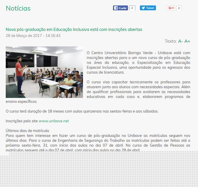 Data de veiculação: 28/03/2017Veículo: Stylo FMEditoria: NotíciasAssunto: Pós-Graduação, Educação Inclusiva , inscrições abertas, UnibaveLink do site: http://www.stylofm.com.br/noticias/nova-pos-graduacao-em-educacao-inclusiva-esta-com-inscricoes-abertas