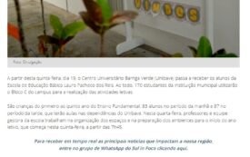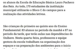 Unibave cede espaço para 170 alunos da Escola Lauro Pacheco dos Reis durante reforma