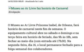 Museu ao Ar Livre faz horário de Carnaval
