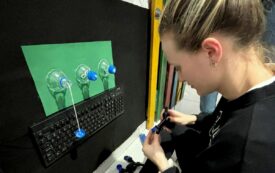 Acadêmicas de Pedagogia do Unibave confeccionam parede sensorial no CIACA, em Braço do Norte