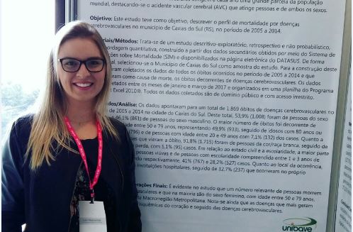 Representando o curso de Enfermagem do Unibave, a acadêmica Gabrieli Vandresen, participou do congresso e apresentou, em formato de pôster, três trabalhos científicos desenvolvidos no Núcleo de Estudos Aplicados a Saúde – NEAS do Unibave, sendo que dois deles foram classificados como “destaque” pelas contribuições que apresentavam para a temática do congresso.