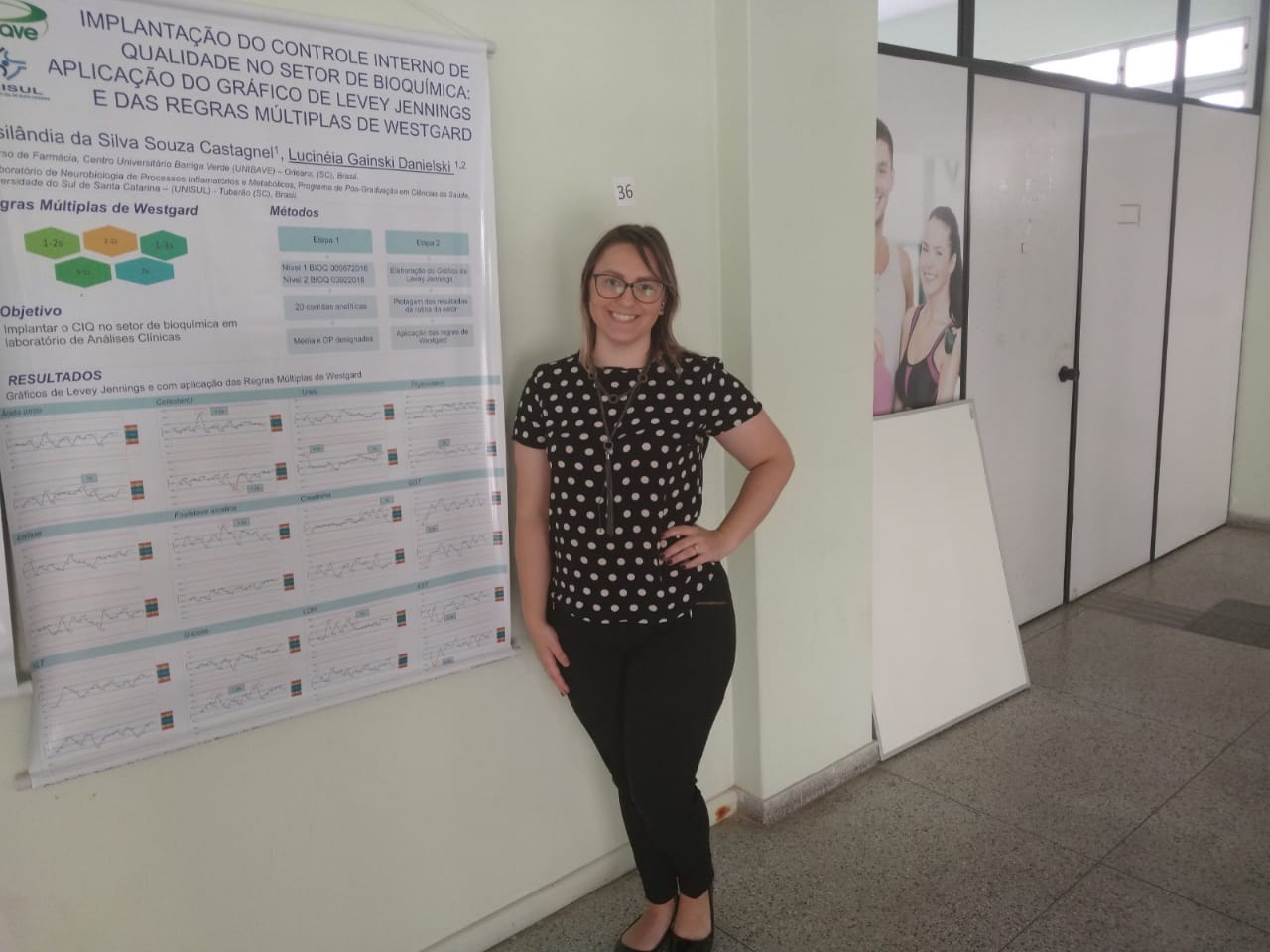 28 de novembro de 2019 - Alunos Cursos InstitucionalA acadêmica de Farmácia do Centro Universitário Barriga Verde – Unibave, Josilandia Silva Souza Castagnel, teve a oportunidade de apresentar um pôster científico em um evento do Programa de Pós-graduação em Ciências da Saúde na Unisul em Tubarão. A aluna falou sobre o tema “Implantação do Controle Interno de Qualidade (CIQ) no setor de Bioquímica: aplicação do gráfico de Levey Jennings e das regras múltiplas de Westgard”.