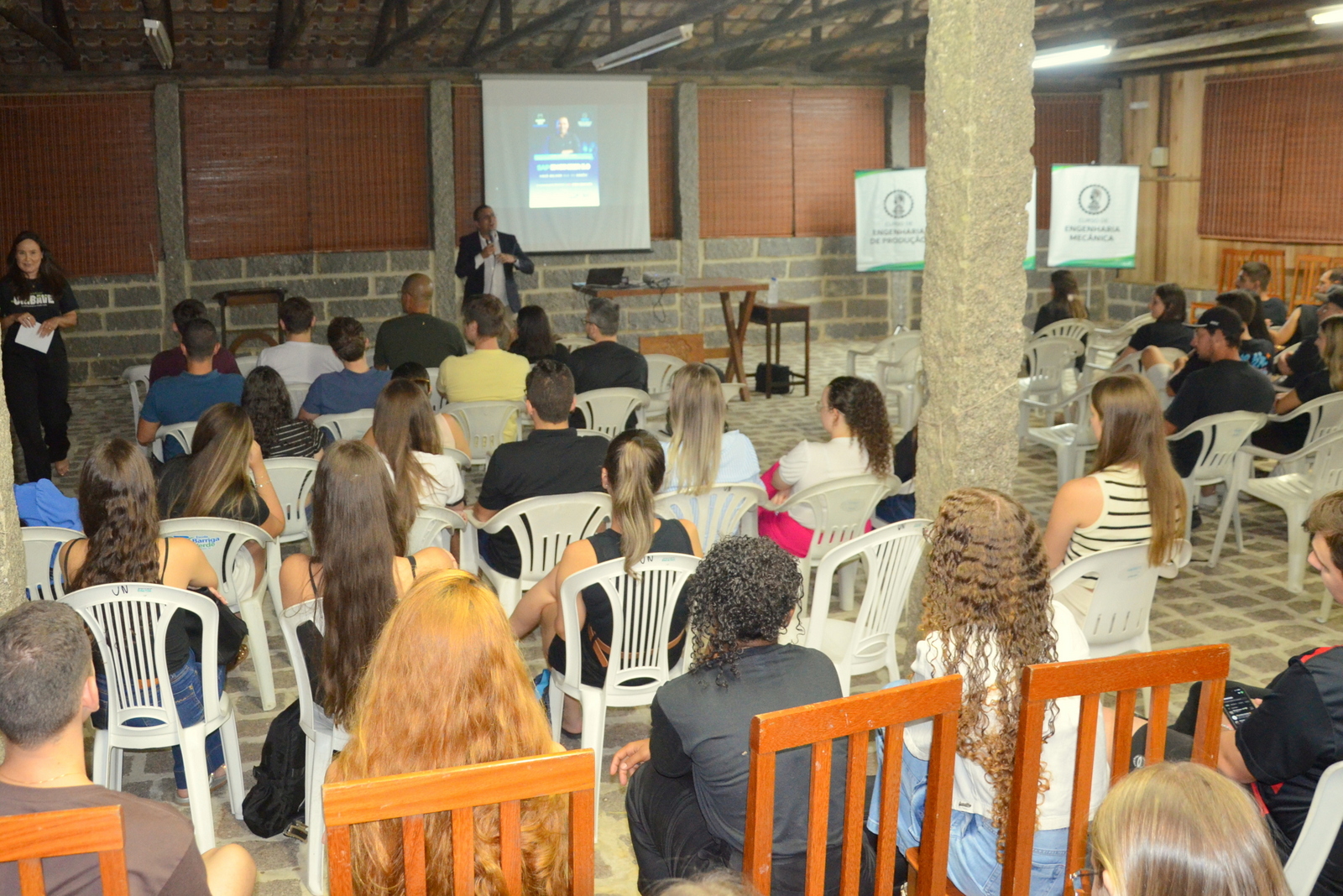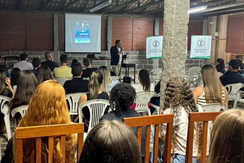 Cerca de 80 acadêmicos da 3ª, 5ª, 7ª e 9ª fases dos cursos de Engenharia Civil, Engenharia Mecânica e Engenharia de Produção participaram, na quarta-feira (04/03), da palestra SAP Engineer 5.0, tratando de empregabilidade e inteligência artificial (IA). O evento foi realizado no espaço da capela do Museu ao Ar Livre e ministrado pelo engenheiro Alexandre Carmo, diretor de projetos da SAP, empresa líder mundial no mercado de software de gestão empresarial.