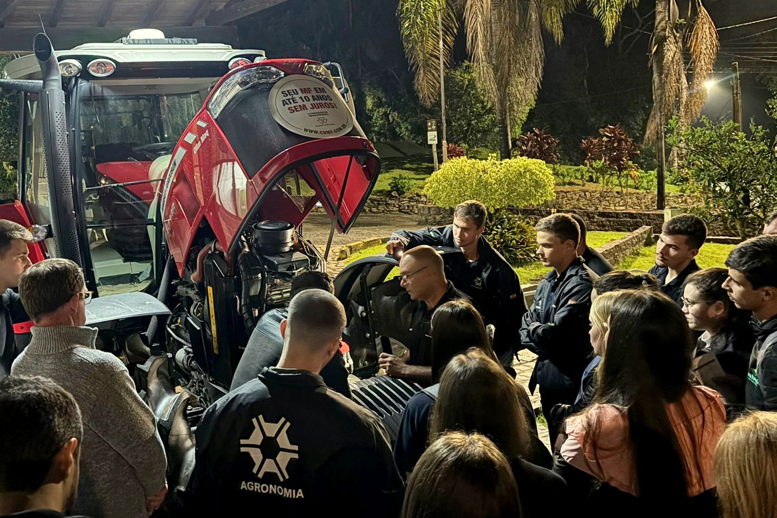 A atividade contou com a parceria da empresa OlimMaq, de Braço do Norte, e teve a presença do chefe dos mecânicos da Massey Ferguson, que apresentou os componentes e funcionalidades das máquinas aos estudantes. “Foi uma aula prática no campus, com a presença do chefe dos mecânicos da Massey Ferguson. Uma oportunidade única de aprendizado na prática”, destacou o professor Doneda.