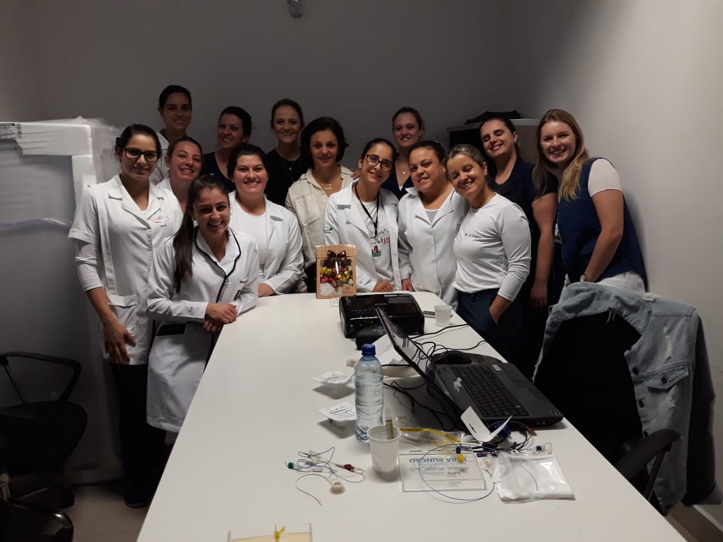 03 de maio de 2018 - Alunos CursosOs acadêmicos do curso de Enfermagem do Centro Universitário Barriga Verde – Unibave e os enfermeiros da Fundação Hospitalar Santa Otilia – FHSO participaram de um treinamento sobre a técnica de cateter totalmente implantado na última quarta-feira, 02, ministrado pela enfermeira Bárbara de Freitas, que trabalha em uma clínica oncológica no município de Criciúma.