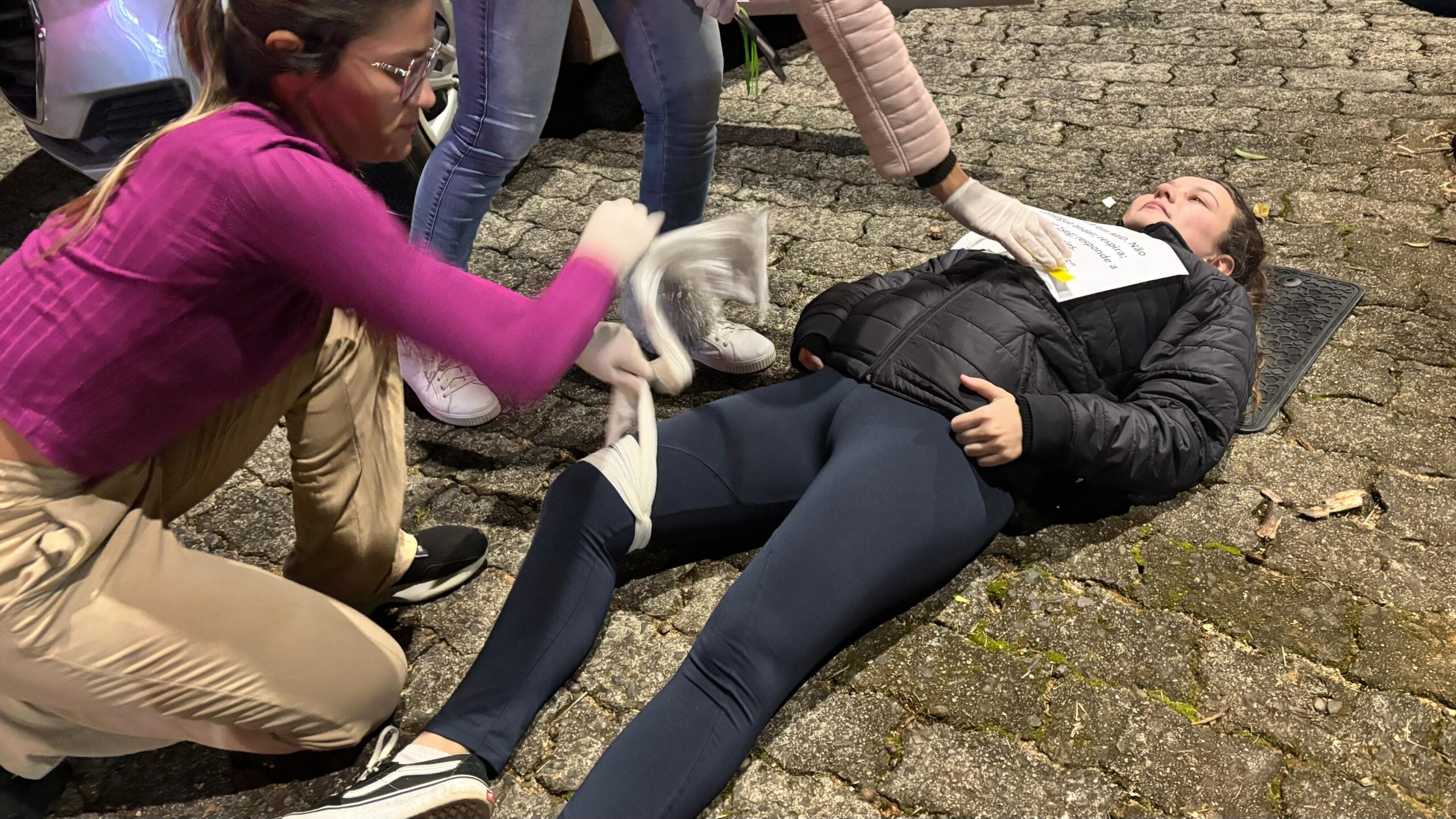 Acadêmicas do curso de Enfermagem do Centro Universitário Barriga Verde (Unibave) participaram de uma simulação de atendimento em emergência pré-hospitalar, no último dia 24. A atividade, realizado no campus, foi promovida em parceria com o Serviço de Atendimento Móvel de Urgência (Samu) e proporcionou uma experiência prática, dinâmica e próxima da realidade enfrentada pelos profissionais da área da saúde.