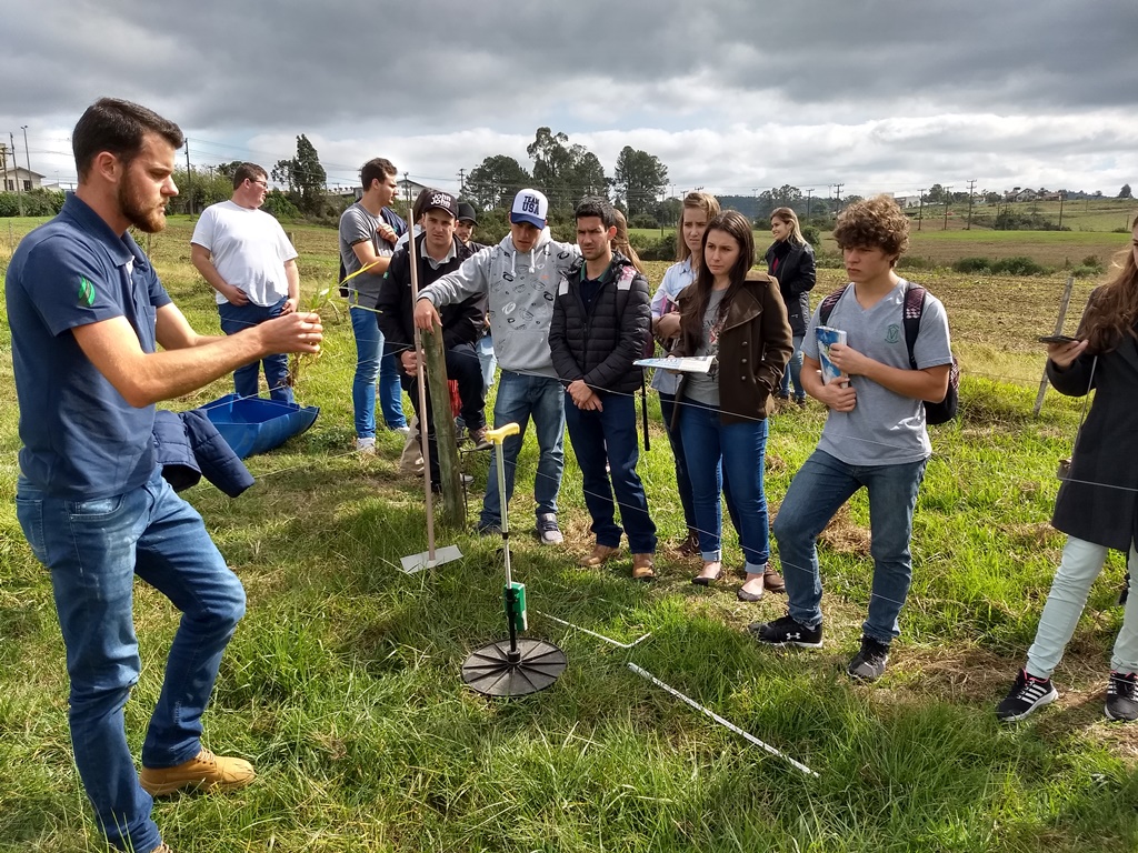 Durante o período vespertino, os acadêmicos foram até os campos experimentais da Empresa de Pesquisa Agropecuária e Extensão Rural de Santa Catarina – Epagri. Na primeira parte foi apresentado e discutido com os acadêmicos informações sobre o sistema silvipastoril, além disso, o grupo pôde acompanhar o exato momento de semeadura com capim denominado missioneira gigante entre as linhas de espaçamento das árvores já implantadas de Eucalyptus sp. Na segunda parte os acadêmicos foram direcionados a uma área de campo nativo onde puderam aprender na prática sobre esse ecossistema tão importante na manutenção de muitas famílias no meio rural catarinense.