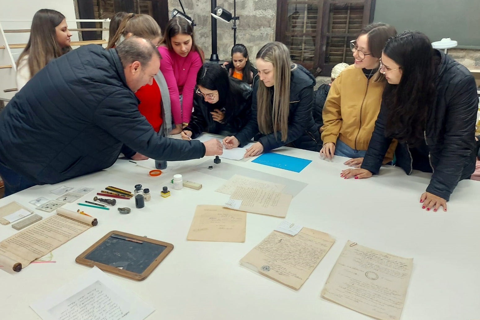 Os trabalhos no local foram conduzidos pela museóloga e diretora do Museu, Valdirene Böger Dorigon, e pelo também museólogo e restaurador Idemar Ghizzo. Eles apresentaram os acervos, contextualizando os fatos históricos pertinentes à temática. “Desta forma, entendemos como a escrita teve e ainda tem papel relevante no desenvolvimento das civilizações. Conhecer o processo de construção da escrita é fundamental para conhecermos o processo da alfabetização e letramento”, comentou a professora Rosilane.