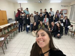 - “Ame-se por inteiro”: Este projeto teve como público-alvo adolescentes do 2º ano do Ensino Médio da Escola de Educação Básica Cônego Nicolau Gesing e teve como objetivo promover uma discussão sobre autoestima com os alunos, conscientizando-os sobre a importância do autocuidado e do amor próprio. Além disso, proporcionou um espaço seguro e acolhedor para que os estudantes pudessem refletir sobre a percepção de si mesmos, compreender os fatores que influenciam na construção da autoestima, desenvolver estratégias saudáveis para fortalecê-la e contribuir para o bem-estar emocional e o desenvolvimento pessoal dos jovens, promovendo uma cultura de autoaceitação e respeito próprio. Os resultados foram alcançados com êxito, com a participação efetiva dos alunos da escola;