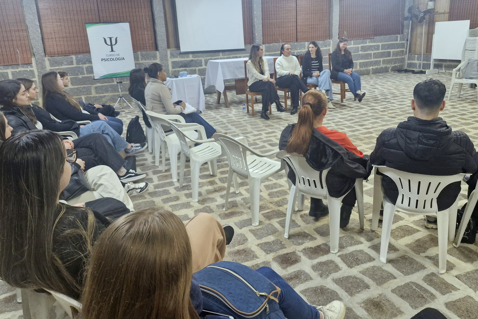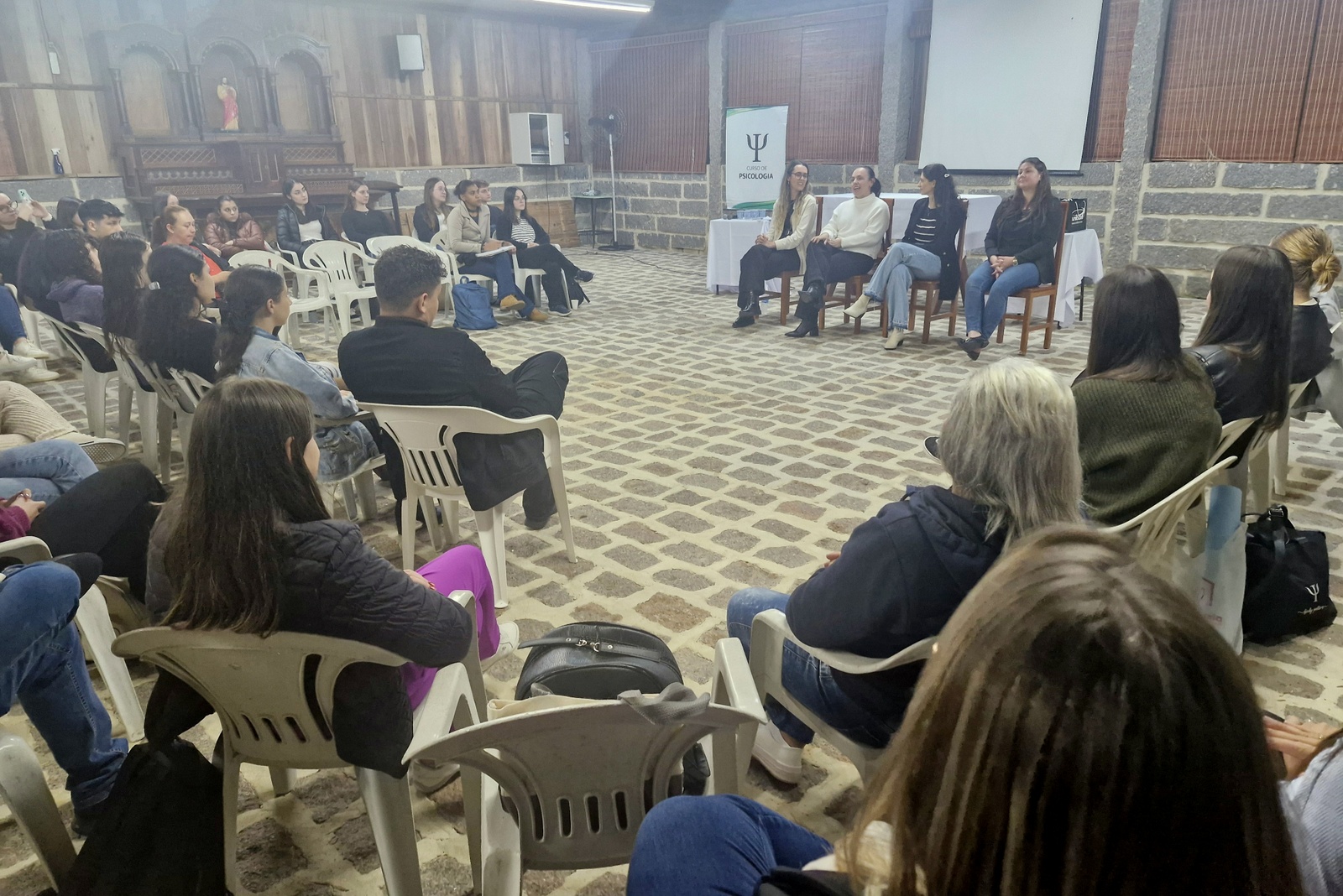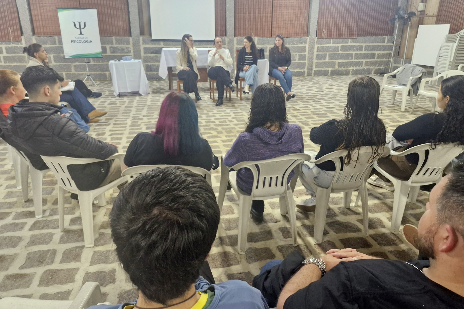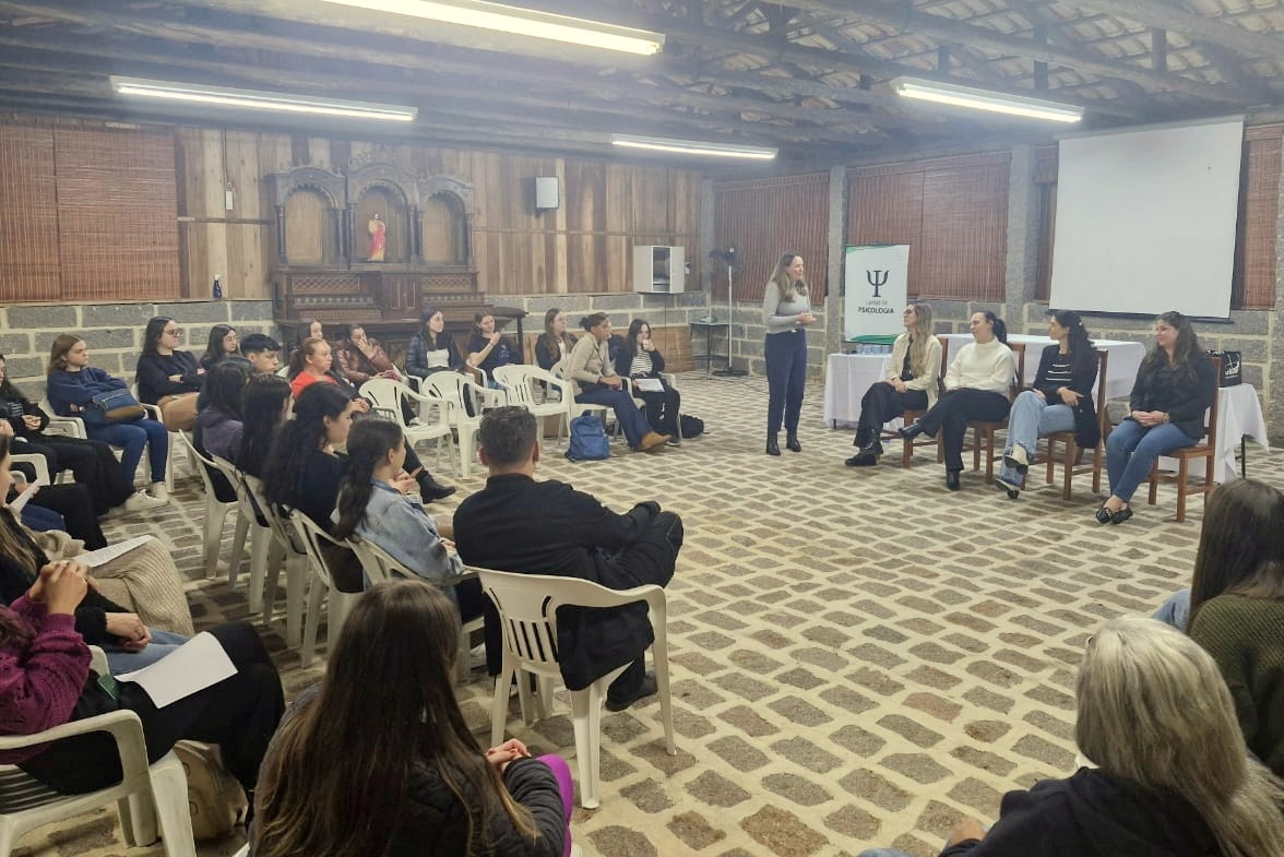 Acadêmicos da primeira fase do curso de Psicologia do Centro Universitário Barriga Verde (Unibave) realizaram a 4ª edição do evento “Diálogos sobre a Profissão: a Psicologia e suas áreas de atuação”. O objetivo foi proporcionar aos acadêmicos uma escuta qualificada sobre o cotidiano profissional, os desafios enfrentados e as potencialidades de cada área, aproximando os estudantes da atuação na área.  O encontrou foi realizado na Capela do Museu ao Ar Livre, na terça-feira, dia 17.