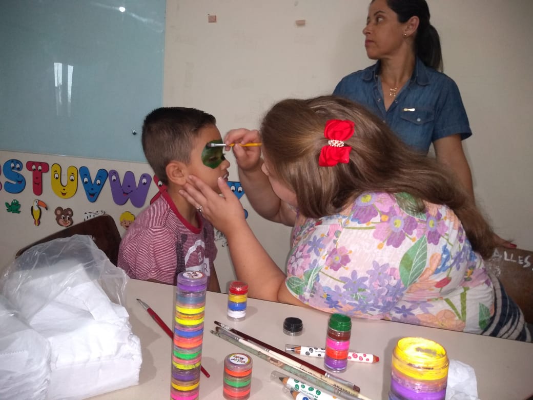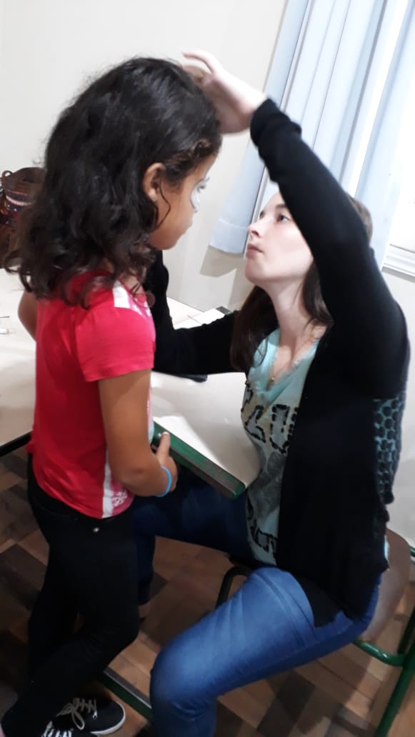 Foram realizadas atividades relacionadas a pintura facial para trabalhar com os alunos do ensino fundamental 1. “Estas atividades relacionam a teoria vivenciada em sala de aula com a prática educativa”, destacou a coordenadora do curso de Pedagogia, Miryan Debiasi.