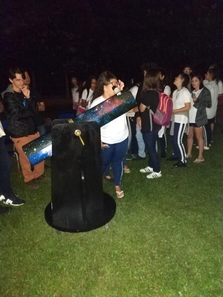 Cerca de 400 acadêmicos do ensino médio tiveram a oportunidade de visualizar a Lua na sua respectiva fase, por intermédio de um Telescópio Newtoniano construído pelos próprios acadêmicos dos cursos de Engenharia do Unibave, nas disciplinas de Física ministradas ao longo da graduação. A noite de observação contou ainda com um aulão sobre Óptica Geométrica, assunto relacionado ao Telescópio. Os acadêmicos da disciplina de Física III explicaram esse conteúdo, com o auxílio da Professora Rosivete. Após a aula teórica, cada aluno teve a oportunidade de visualizar na prática os conceitos aprendidos por meio da observação guiada.