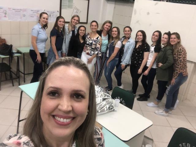 19 de junho de 2019 - Alunos CursosNa sexta-feira, dia 14, alunas da 3ª fase do curso de técnico em Estética do Centro Universitário Barriga Verde – Unibave participaram de um debate com a experiente profissional da área Claudia Zanette. A atividade foi desenvolvida na disciplina de Atendimento Humanizado em Saúde, ministrada pela professora Kelli Pazeto Della Giustina.