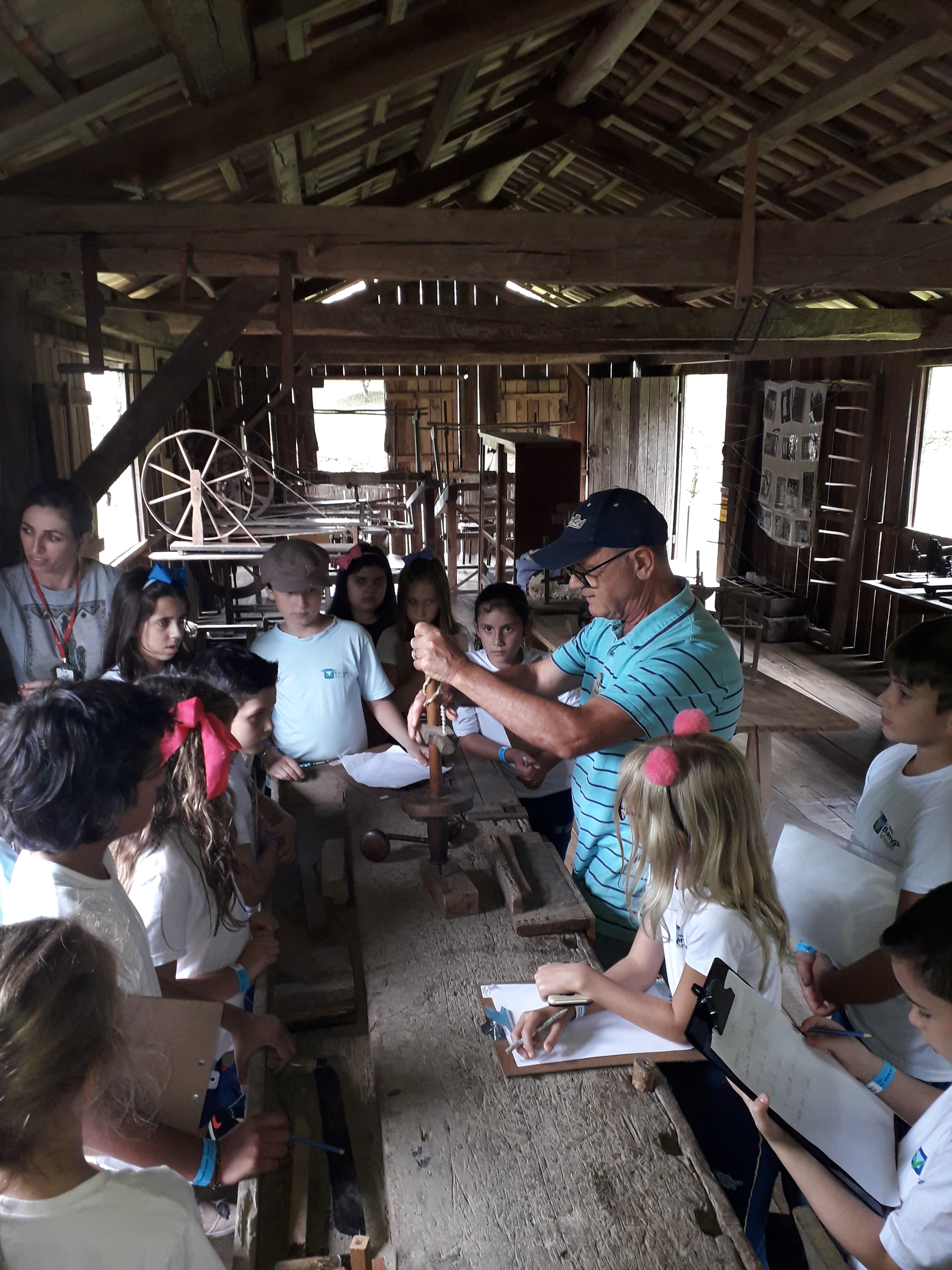 A atividade foi conduzida pelos colaboradores do Museu, que apresentaram algumas unidades do local, como a Casa do Colono, Oficinas Artesanais e Serraria, e ainda atividades do dia a dia relacionadas ao trabalho do homem, da mulher e das crianças no período da colonização na região sul de Santa Catarina, contrapondo com os dias atuais.