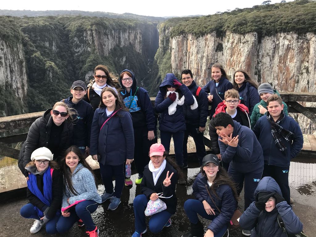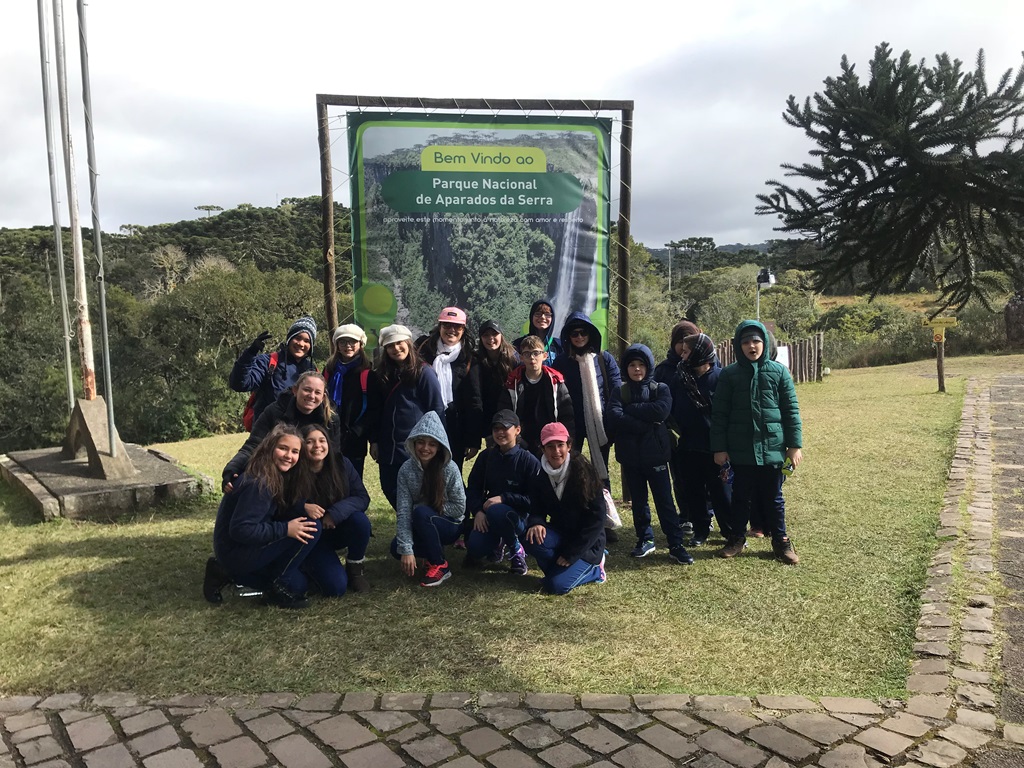 13 de agosto de 2018 - AlunosCom o intuito de complementar os conteúdos estudados neste segundo semestre, os alunos do 6º ano da Escola Barriga Verde – EBV, acompanhados da professora Tayse Nicoladelli e da psicóloga Vanessa de Medeiros, realizaram uma viagem de estudo, na última sexta-feira, 10, ao Parque Nacional Aparados da Serra, em Cambará do Sul/RS.