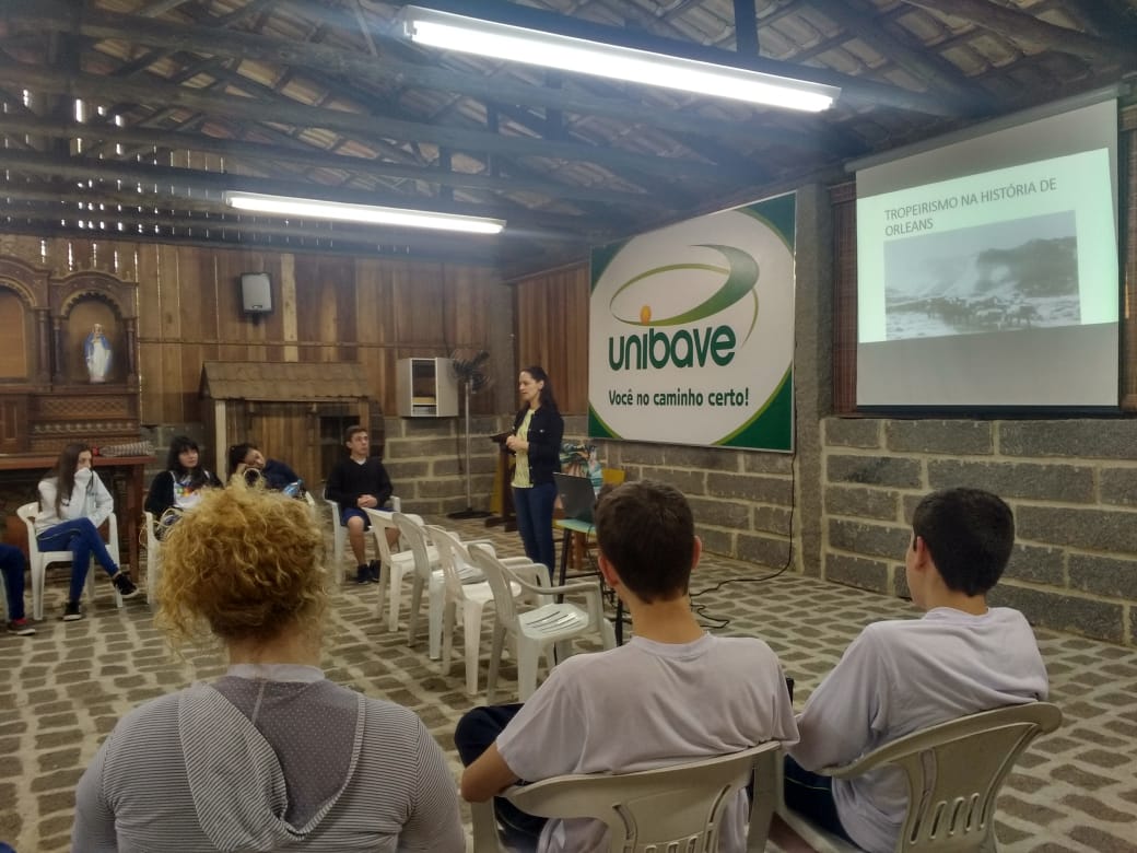 Na oportunidade, diante dos estudos sobre a formação territorial do Brasil, a professora e mestranda Márcia Preve foi convidada para falar sobre o tropeirismo, um ciclo econômico importante para configuração espacial do Brasil e da nossa região no passado. Márcia é mestranda da Universidade do Estado de Santa Catarina em Ensino de História e sua pesquisa em andamento é sobre o tropeirismo como movimento econômico e social e as heranças culturais que essa atividade deixou na história de Orleans.