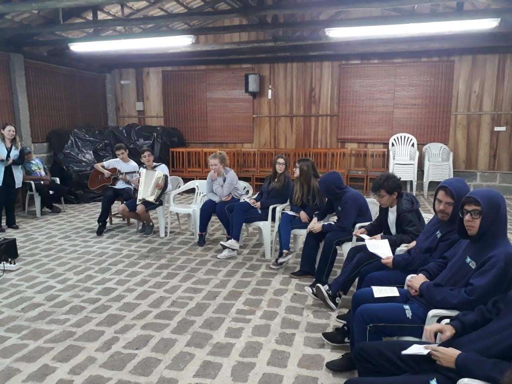 Ao final, os alunos, com seus instrumentos (gaita e violão), tocaram algumas músicas produzidas por artistas locais e regionais que retratam o tropeirismo.