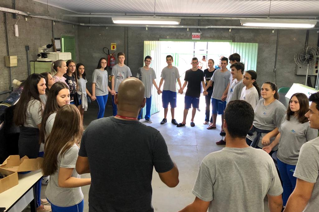 Depois da conversa com os pesquisadores, os alunos seguiram para o Centro Tecnológico, para uma visita monitorada pelos integrantes do Projeto Geração Unibave, onde tiveram uma vivência prática. Os alunos conheceram ainda os laboratórios e tiveram contato com alguns trabalhos desenvolvidos pelo acadêmicos do Unibave.