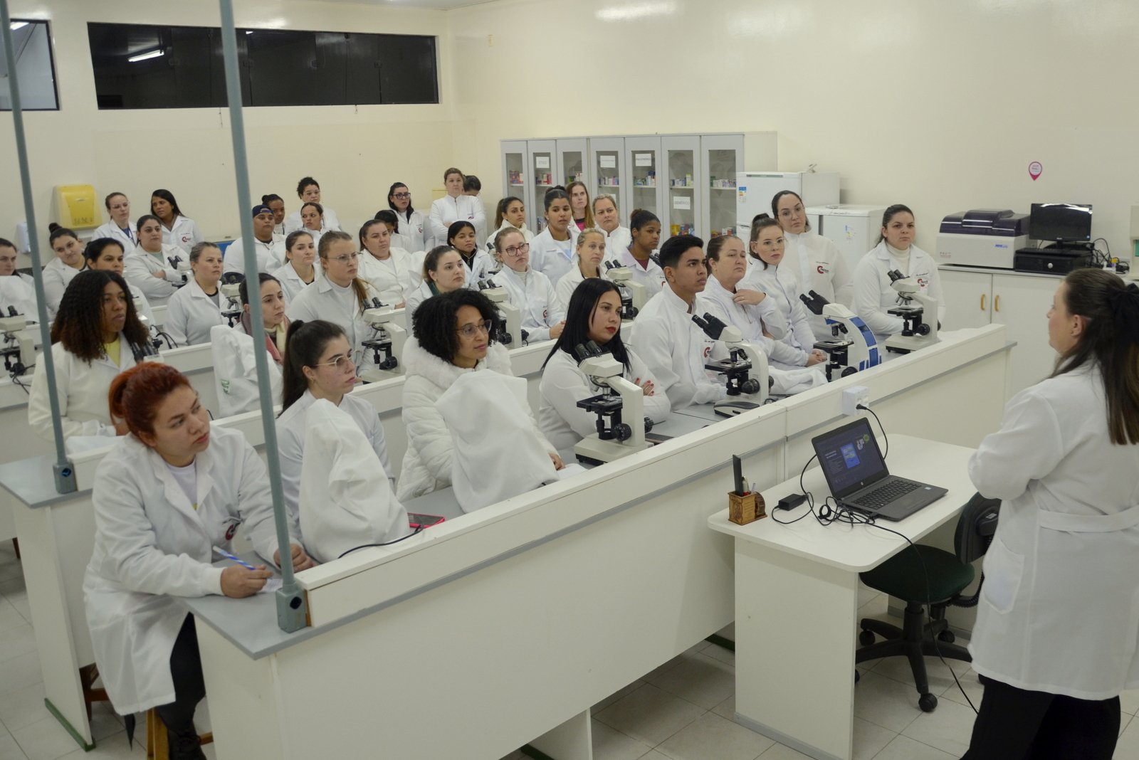 Os alunos do curso Técnico em Enfermagem do Centro de Educação Profissional (Cedup) José Buss, de Rio Fortuna, visitaram os laboratórios de Ciências Biológicas e Saúde do Centro Universitário Barriga Verde (Unibave), nesta noite de terça-feira (4/06). Os estudantes realizaram tipagem sanguínea e visualizaram nos microscópios lâminas histológicas, assim como conheceram o Laboratório de Anatomia Humana e o Laboratório de Enfermagem.