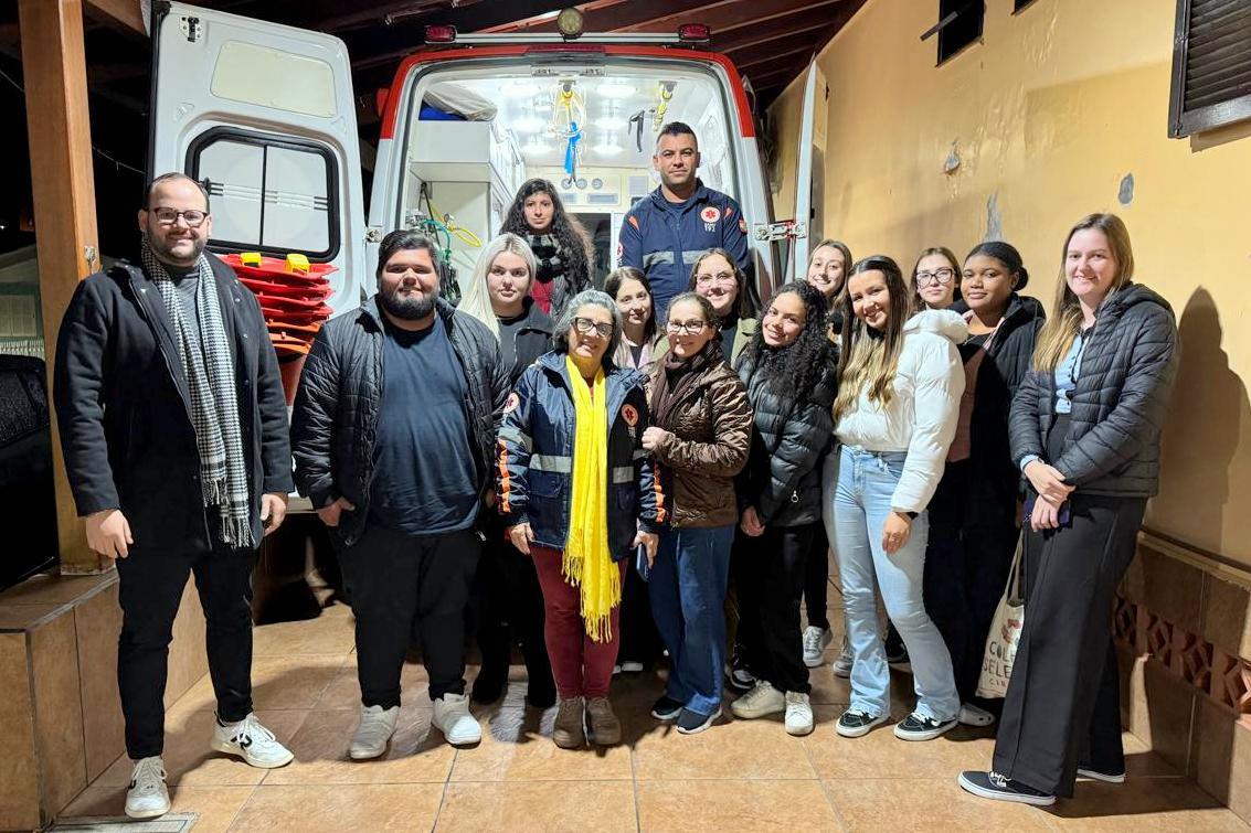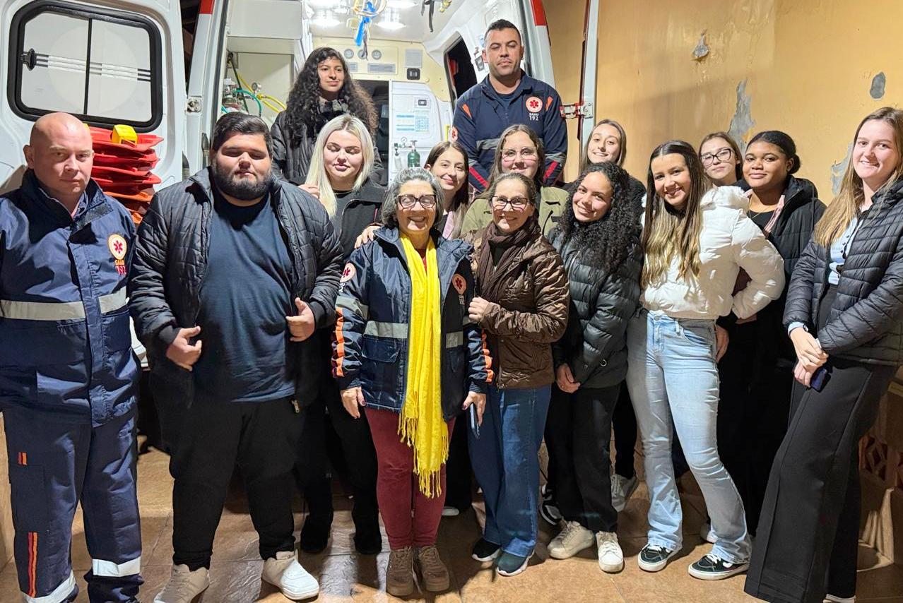 A turma foi recebida pela coordenadora da base, a enfermeira Karla Pickler Cunha, acompanhada pela equipe composta por motorista socorrista e técnico de enfermagem. Durante a visita, os alunos conheceram a estrutura do serviço, acompanharam demonstrações dos equipamentos das ambulâncias e observaram os protocolos utilizados nos atendimentos pré-hospitalares.