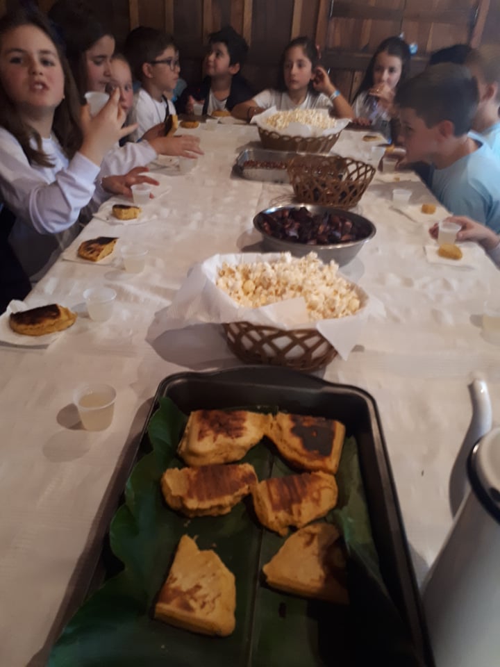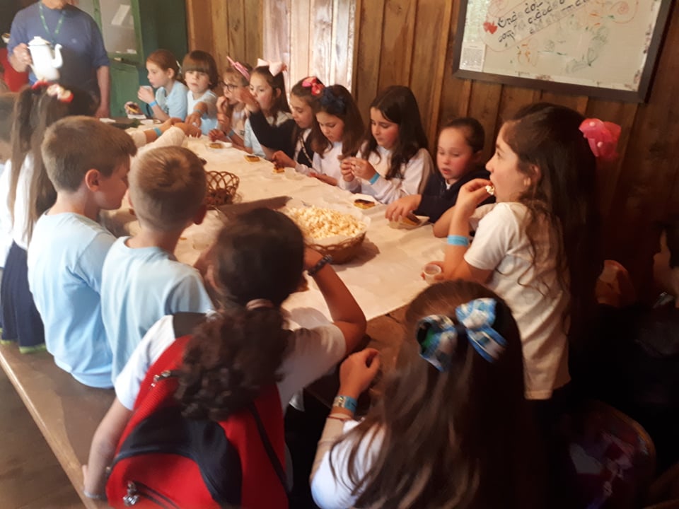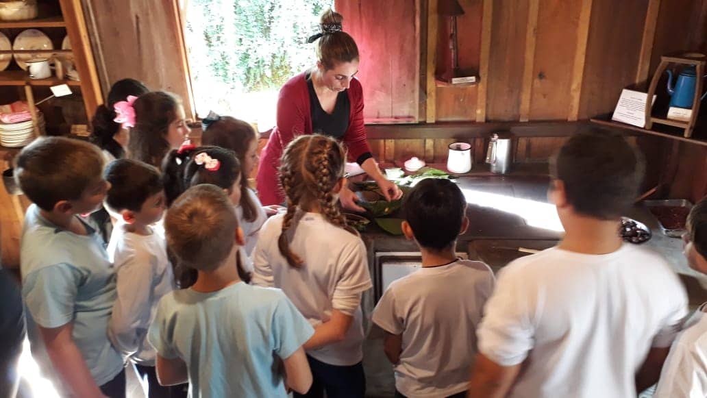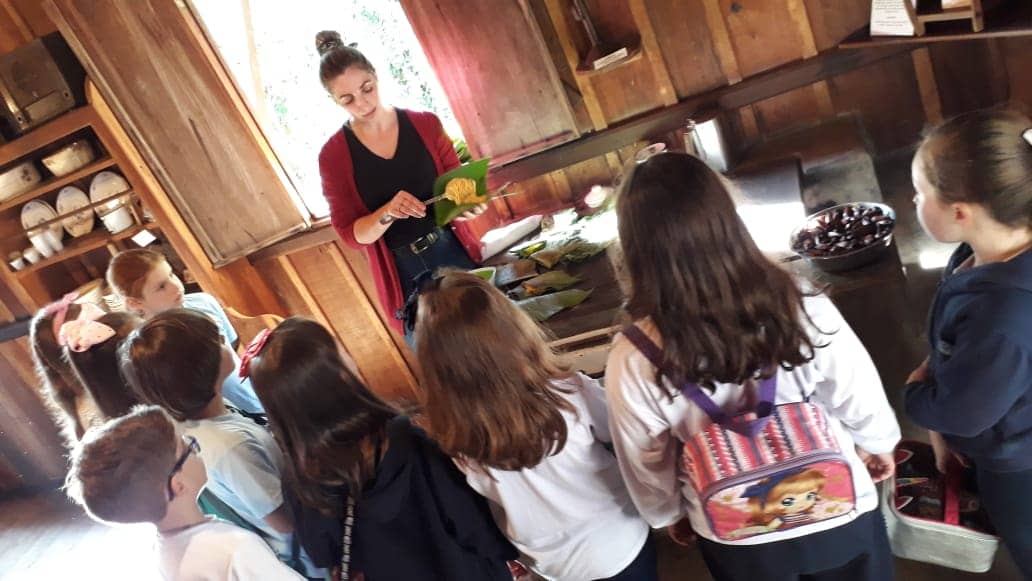 No Museu, espaço que representa o período da imigração europeia no Sul de Santa Catarina, os alunos colheram ervas no quintal da Casa do Colono para preparar chás e comeram alguns alimentos que tiveram influências dos antepassados. Aprenderam ainda a fazer o bolinho de farinha de milho, que é assado com folha de caeté na chapa do fogão.