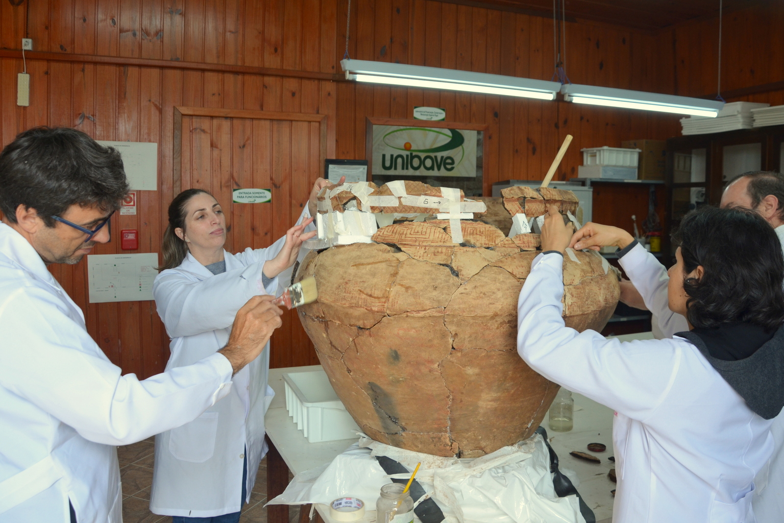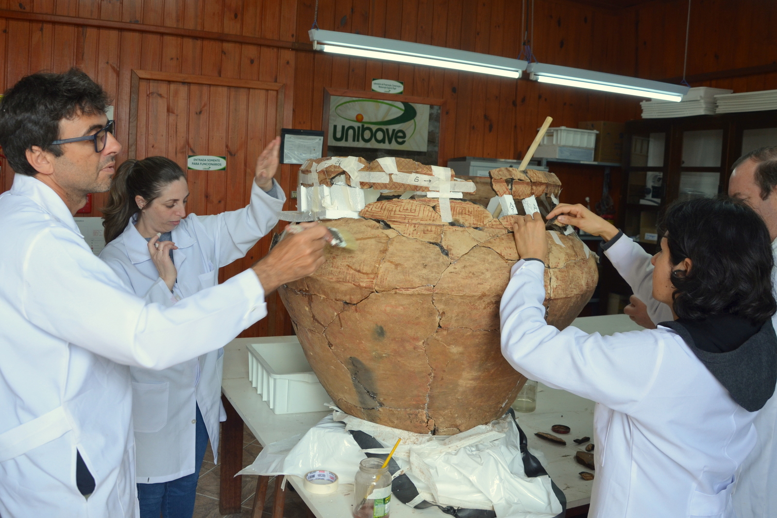 O restaurador e museólogo do Malpi/Unibave, Idemar Ghizzo, explica que os fragmentos cerâmicos passaram por um tratamento de bordas para firmar e depois fazer a remontagem. “Para isso, utilizamos materiais inertes, removíveis, pois, se tiver necessidade de desmontagem ou fazer uma correção nesse trabalho, é possível. Por ser inerte, ele não prejudica a cerâmica. Tendo o objeto montado facilita a leitura de quem for olhar onde será exposta”, explica Idemar. A peça deve ser encaminhada ao Centro de Memória do Oeste de Santa Catarina (CEOM), em Chapecó.