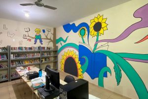 Além dos acadêmicos, o projeto contou com uma participação voluntária muito especial, o artista plástico Teo Matos, de 26 anos, que fez a pintura das paredes da biblioteca. Ao todo, Teo levou 13 horas para decorar as paredes do espaço e o resultado “a todos encantou”, definiu a professora do Unibave, Luiza Liene Bressan, que coordena a revitalização.