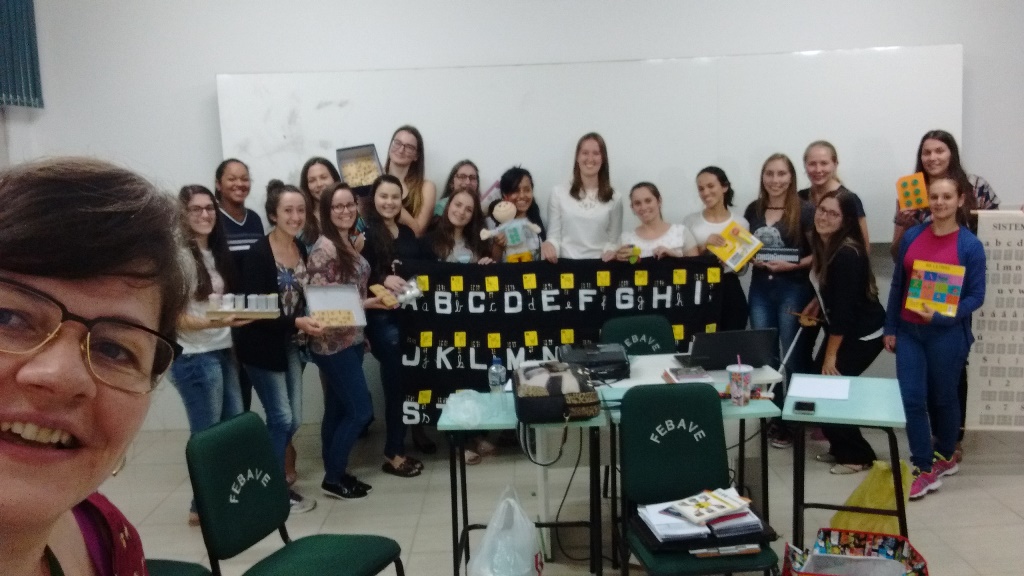 Na última sexta-feira, 20, a sétima fase do curso de Pedagogia do Centro Universitário Barriga Verde – Unibave, teve a oportunidade de conhecer uma série de materiais didáticos adaptados para deficientes. Esta aula interativa, aconteceu na disciplina de Educação Especial e Processos Educativos II, sob responsabilidade da professora Rosani Hobold Duarte.