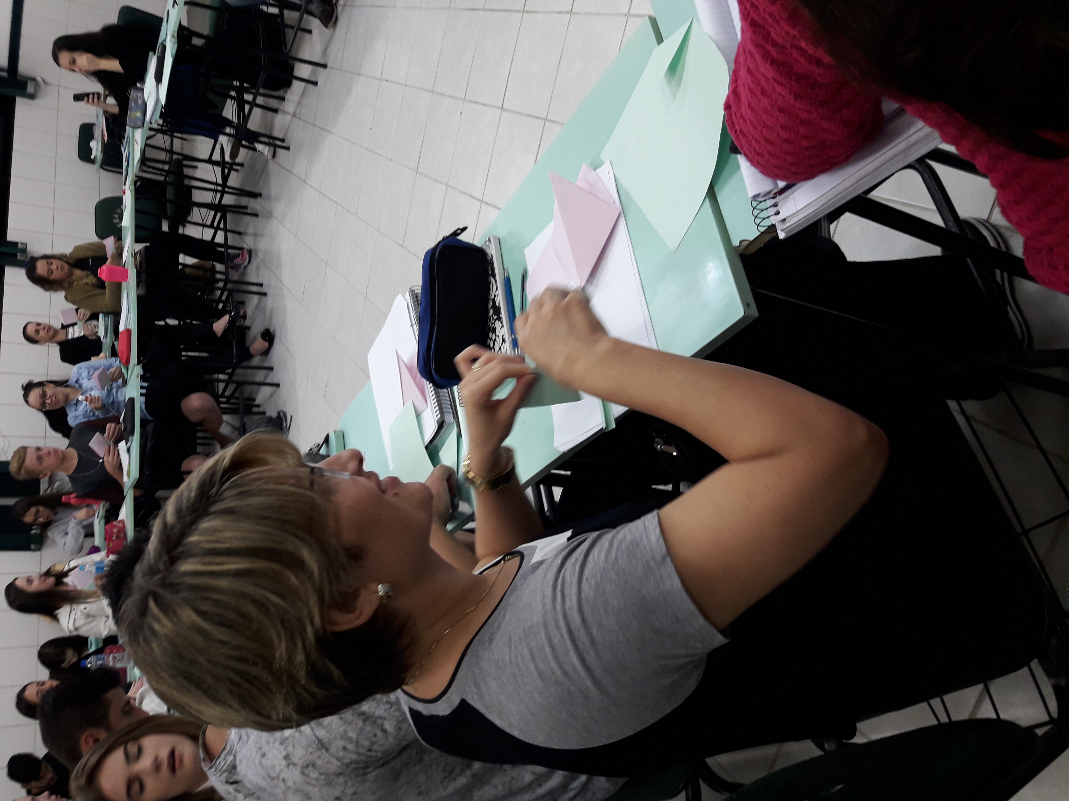 Os acadêmicos encerraram a noite, realizando uma atividade de dobradura, em parceria com a arte educadora, Juliana Natal. Na dobradura, em formato de flor, os acadêmicos escreveram reflexões que serão expostas no campus.