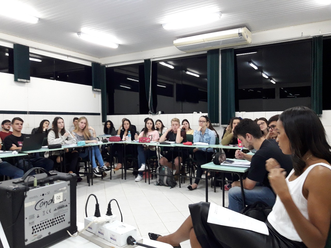 “A Pamelys, aproximou os acadêmicos da prática da advocacia, no que tange os assuntos relacionados ao tema da noite, ela enfatizou que a educação em direitos humanos tem como uma das premissas o empoderamento de grupos minoritários. Uma das lutas travadas ainda hoje se refere à violência contra a mulher. Violência aqui não é entendida apenas como sinônimo de violência doméstica, e sim como um conceito mais amplo que permeia as relações de gênero”, completou a professora.