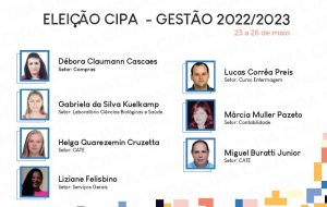 Começou nesta segunda e vai até quinta-feira (23 a 26/05), às 22h, as eleições dos membros titulares e suplentes da Comissão Interna de Prevenção de Acidentes (Cipa) para gestão 2022/2023. Os colaboradores da instituição escolherão os seis nomes, três titulares e três suplentes, que farão parte da Cipa, com mandato de dois anos. A votação será on-line, conforme o link disponível e o resultado final será conhecido no dia 27 de maio.