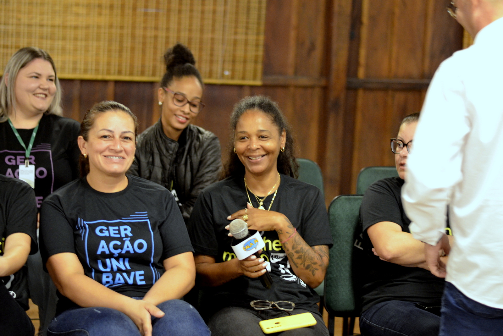 Antes do café, os colaboradores receberam um guarda-chuva personalizado, fazendo referência aos 50 anos de história do Unibave, que será inteirado no dia 23 de setembro.