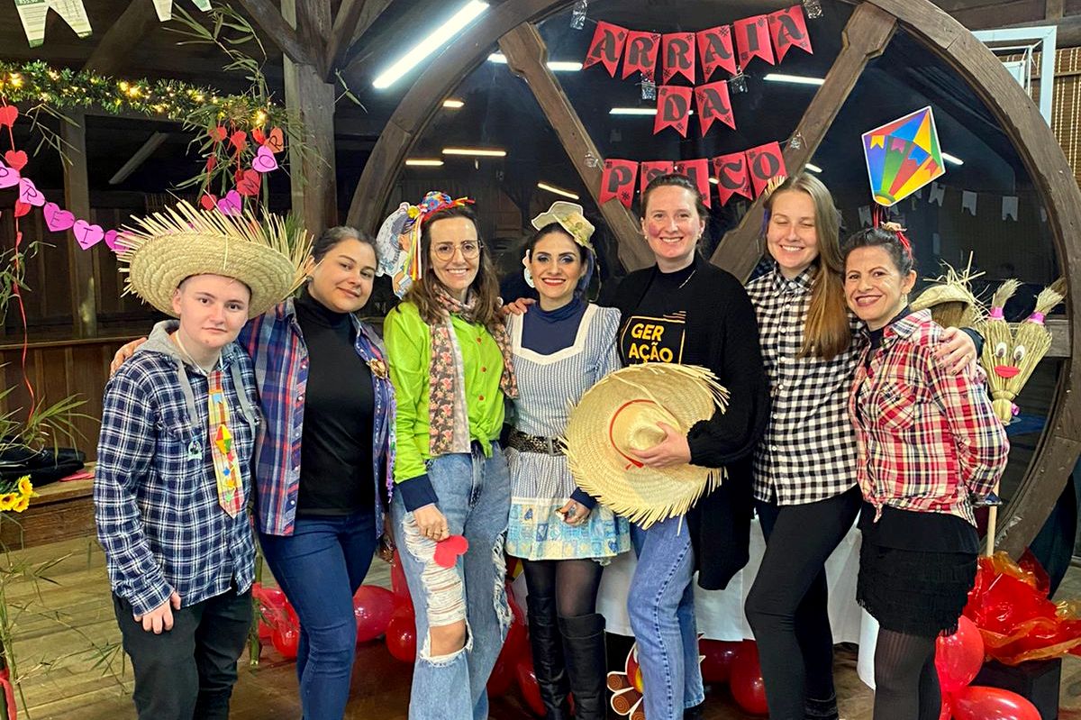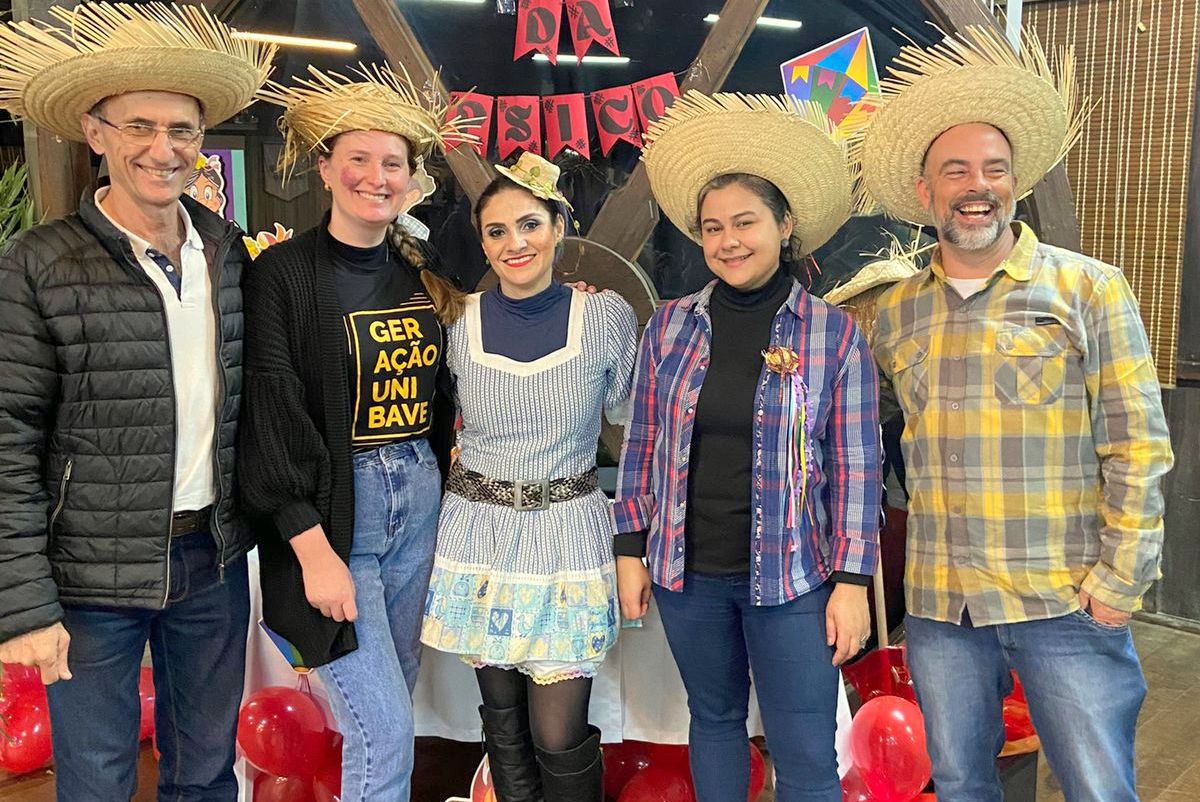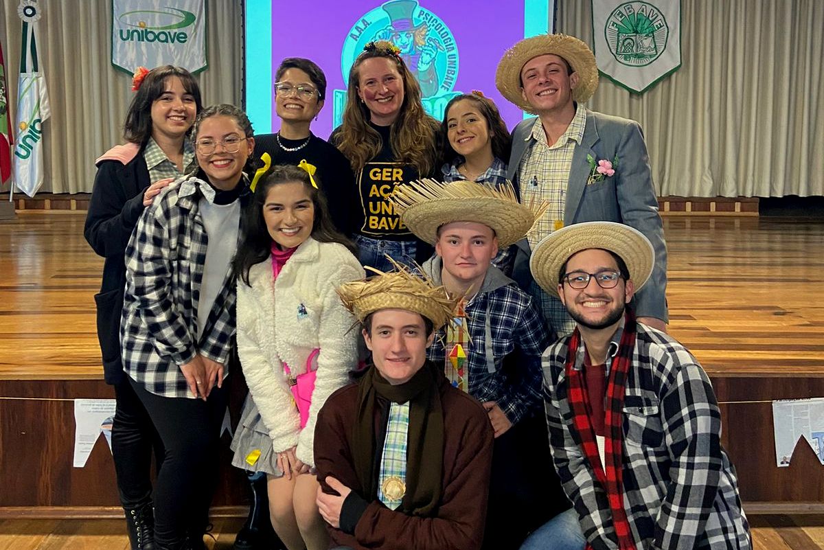 Os acadêmicos do curso de Psicologia, do Centro Universitário Barriga Verde (Unibave), realizaram, na sexta-feira (01/07), uma confraternização temática, com quitutes, brincadeiras e danças típicas. A festa Julina, que celebra o fim do semestre, foi organizada pelo movimento estudantil Atlética Lunáticos, que retomou suas atividades neste semestre.