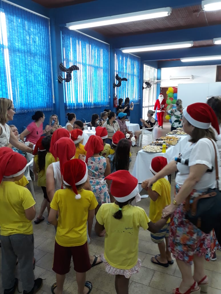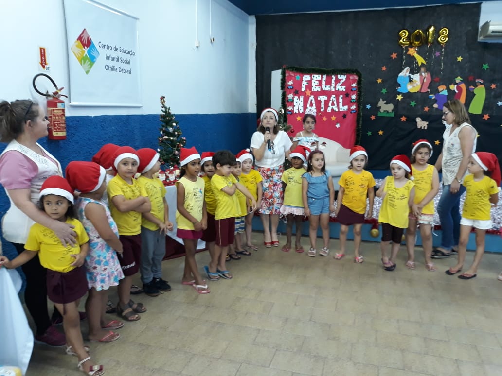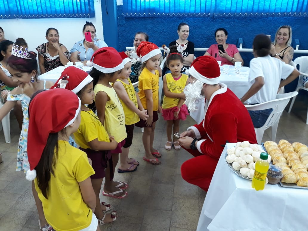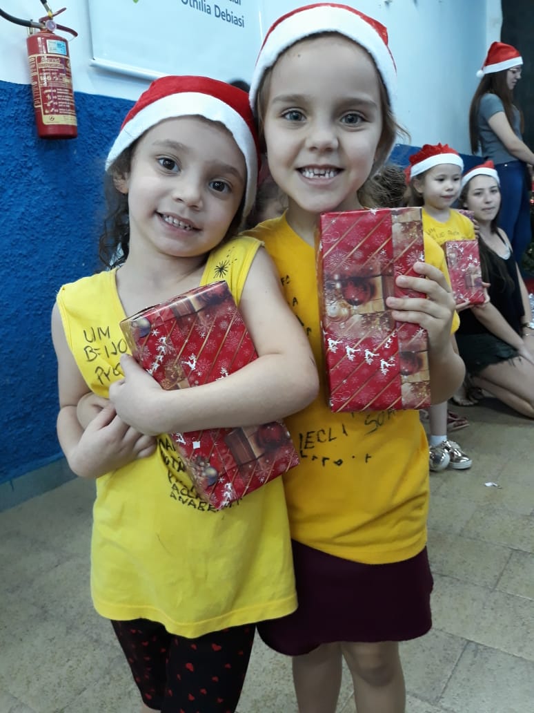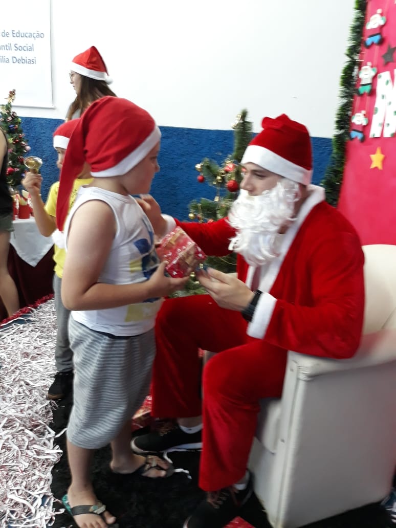 17 de dezembro de 2018 - Alunos Comunidade Cursos InstitucionalAs 25 crianças que integram o Centro de Educação Infantil Social Otilia Debiasi, receberam na última, sexta-feira, 14, os participantes do Programa Natal Cidadão, para uma tarde de brincadeiras e a tão esperada chegada do o Papai-Noel, que entregou às crianças e seus familiares cestas básicas e chocolates.