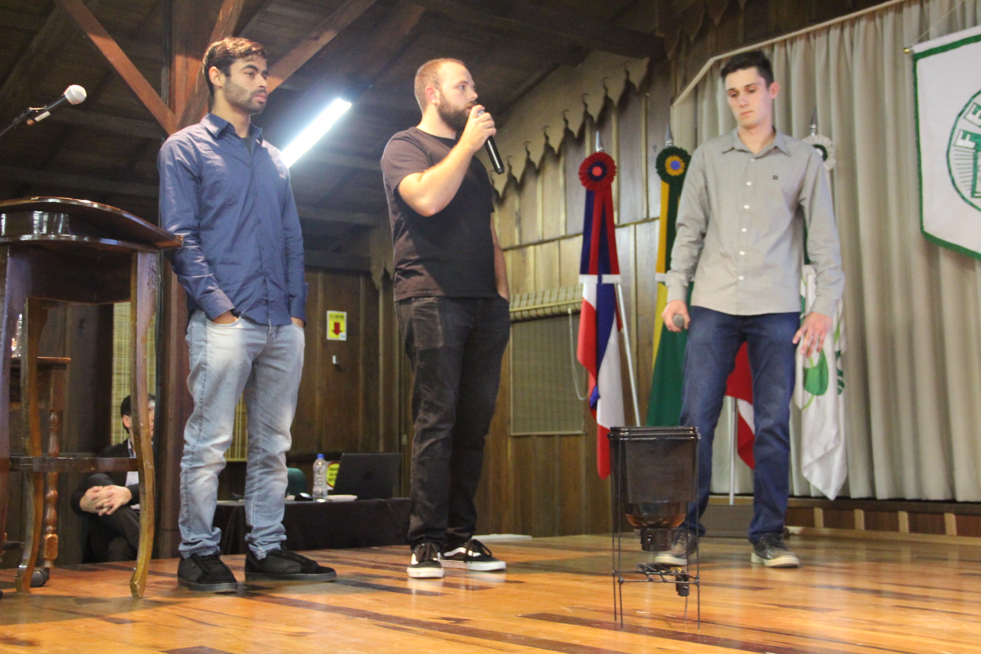 O coordenador ainda agradece os empresários Cleno Schilickmann da empresa Projedata, Glauber Recco da Agapé Cosméticos, João Alexandre Guze representando o Sebrae, Joelma Fornasa da Ibrap/Esaf, Lucas Corrêa da Jalmec, Pedro Lole das lojas LCL, Ramires Fontanella da Fontanella Transportes, Thayni Librelato da Silva da Librelato S.A. e presidente da ACIO, e Ubirajara Pickler da A Musical e vice-presidente de Relações Públicas da ACIO, por participarem da banca avaliadora dos projetos.