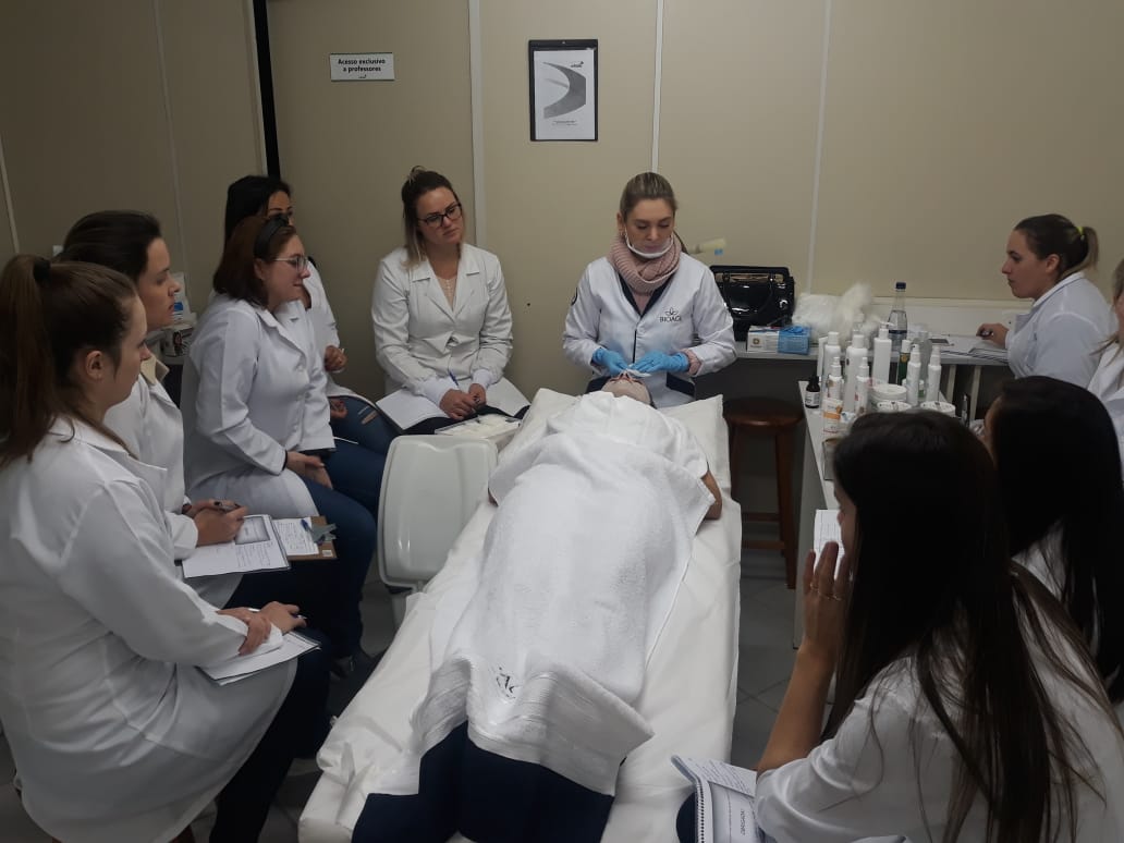 29 de agosto de 2019 - Alunos CursosO curso técnico em Estética do Centro Universitário Barriga Verde – Unibave, em parceria com a Bioage, de Tubarão, promoveu um curso de aperfeiçoamento em limpeza de pele, ministrado pela cosmetóloga, esteticista e proprietária da empresa, Lara Alves Schoten.