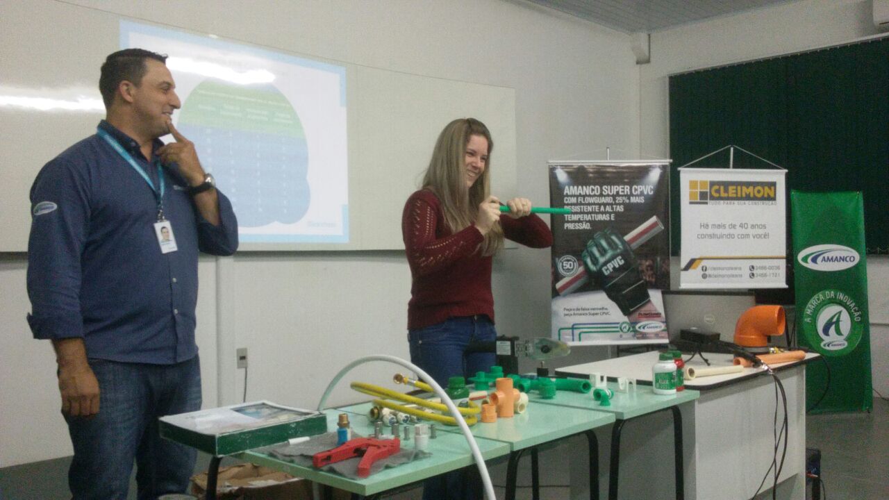 Na oportunidade, acadêmicos e egressos puderam conhecer o que há de mais novo em termos de material para tubulação de água quente e fria que a empresa disponibiliza no mercado, além de técnicas construtivas para a melhor aplicação dos mesmos.
