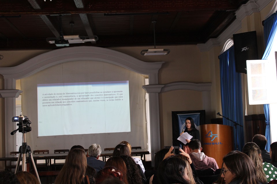No sábado, dia 19, foram feitas apresentações sobre a articulação entre a formação matemática no curso de Pedagogia e a docência no estágio na Unesc, o ensino de Matemática e suas perspectivas de formação humana no Curso de Pedagogia do Unibave (professor doutor William Casagrande Candiotto e acadêmica Thalia Estevam) e o ensino de Matemática a partir de situações desencadeadoras de aprendizagem, apresentado pela Uespi.