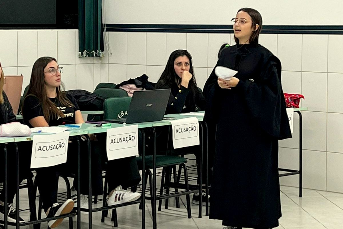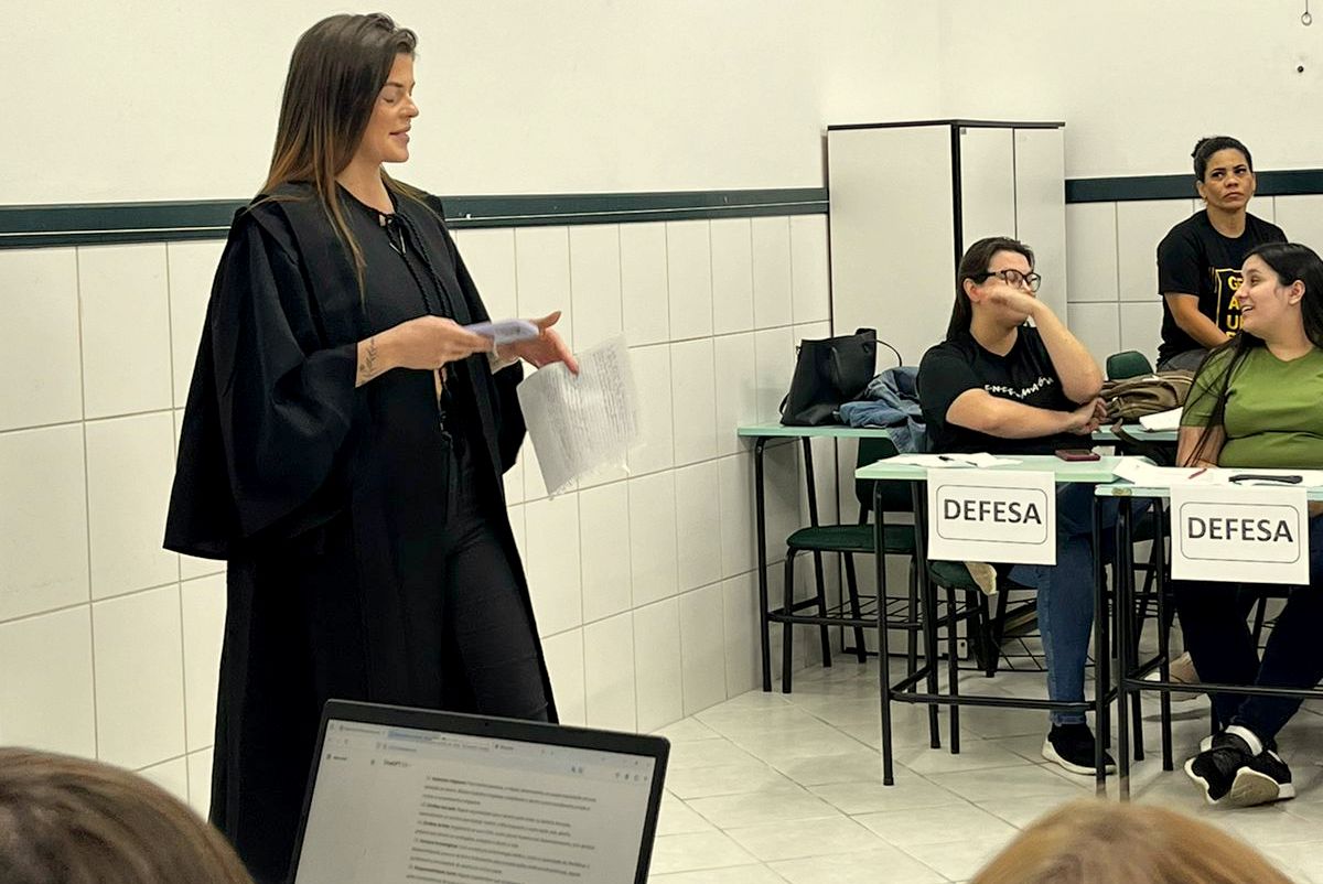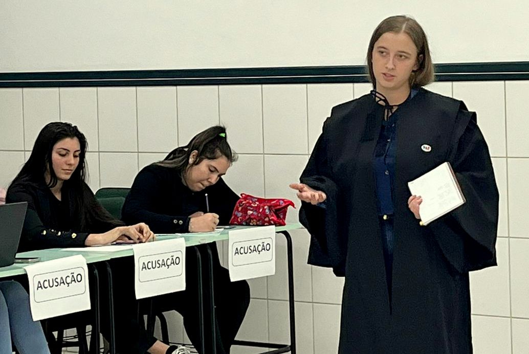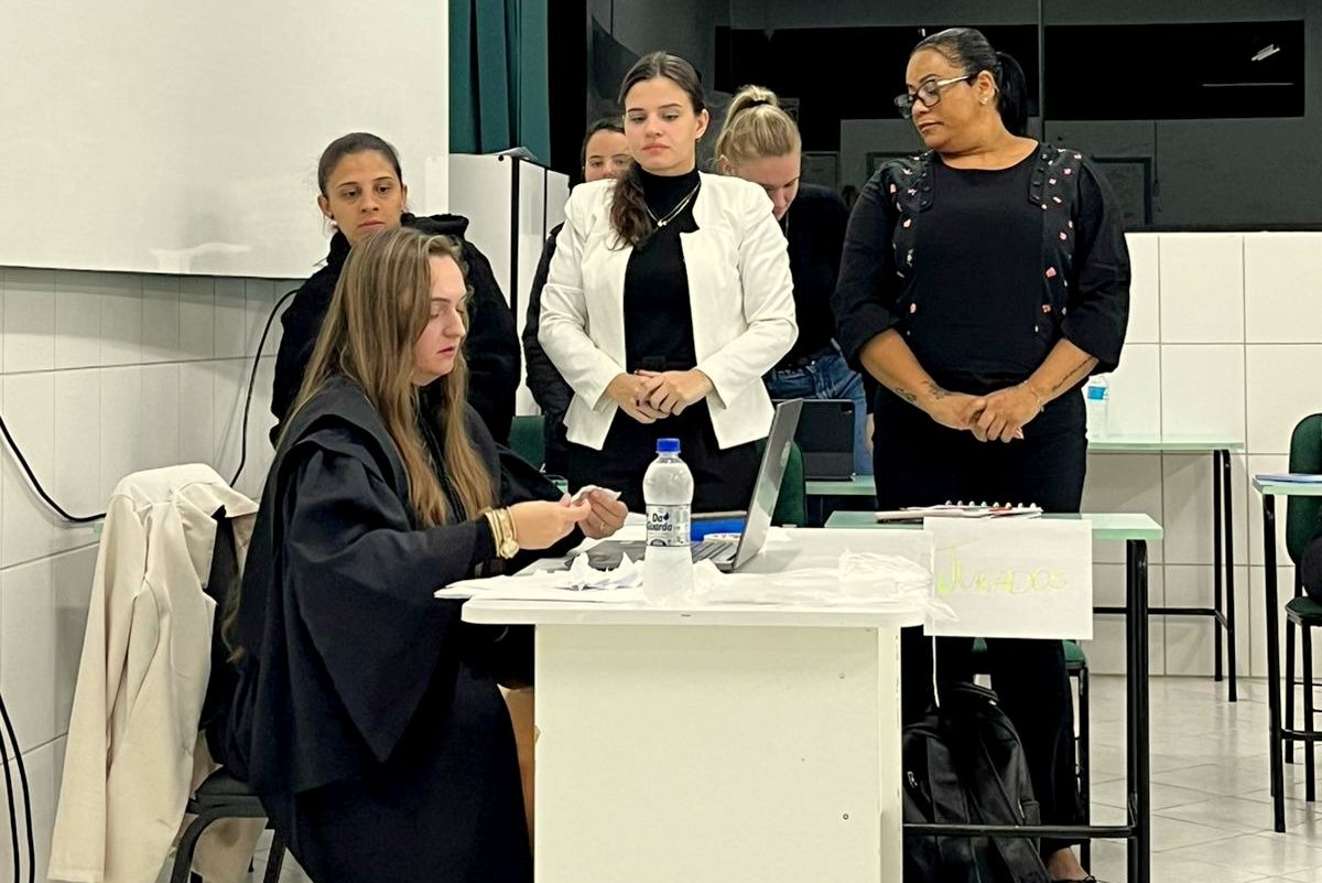 Um júri simulado foi montado durante a disciplina de Processo de Cuidar em Saúde da Mulher e do Homem, do curso de Enfermagem do Centro Universitário Barriga Verde (Unibave). O tema do “julgamento” foi o aborto, com a participação da advogada especialista em direito à saúde, Évellen Colombo Nicolau, que presidiu o júri, na última quinta-feira, dia 9 de maio.