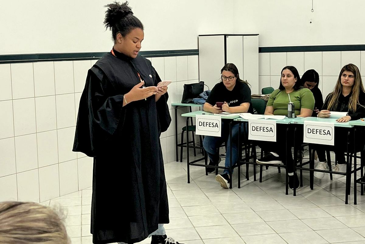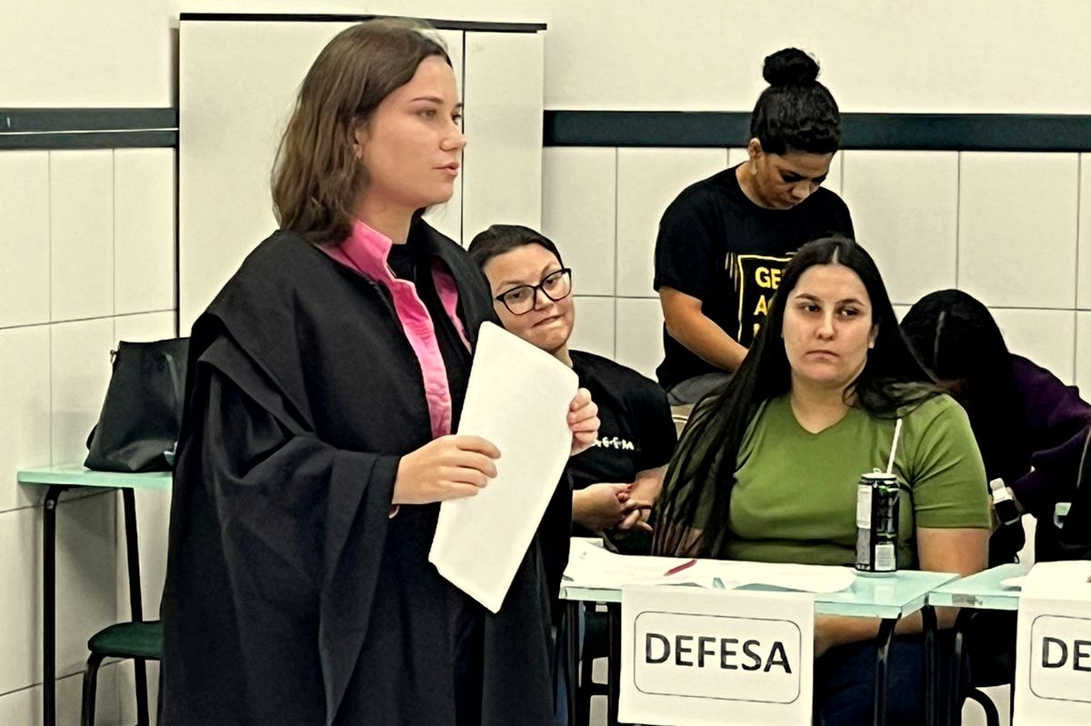 Para a efetivação da atividade proposta pela professora da disciplina, Débora Felippe Brolese, os acadêmicos foram divididos em duas equipes, com dois casos distintos, contando com juiz, júri, equipe de defesa e acusação do aborto. Os estudantes elaboraram seus argumentos a favor e contra o aborto e, ao final, o júri deu o veredito.