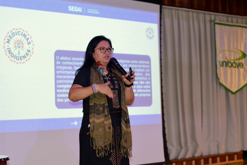 Com a frase “para reflorestar as mentes a partir da saúde indígena”, a diretora do Departamento de Atenção Primária à Saúde Indígena do Ministério da Saúde, Dra. Putira Sacuena, encerrou a primeira noite da 16ª edição do Seminário de Ensino, Pesquisa e Extensão (Senpex) no Centro Universitário Barriga Verde (Unibave), nesta terça-feira, dia 28.