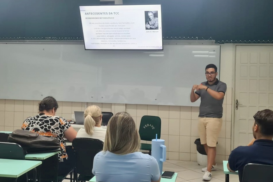 O estágio está sendo desenvolvido na disciplina de Teorias e Técnicas Psicoterápicas Cognitivas Comportamentais, ofertada na 7ª fase do curso de Psicologia. Sob a supervisão da professora mestra Maria Eduarda Fernandes Pacheco, Gustavo compartilha seus conhecimentos e experiências, promovendo a troca de saberes entre estudantes e docentes.