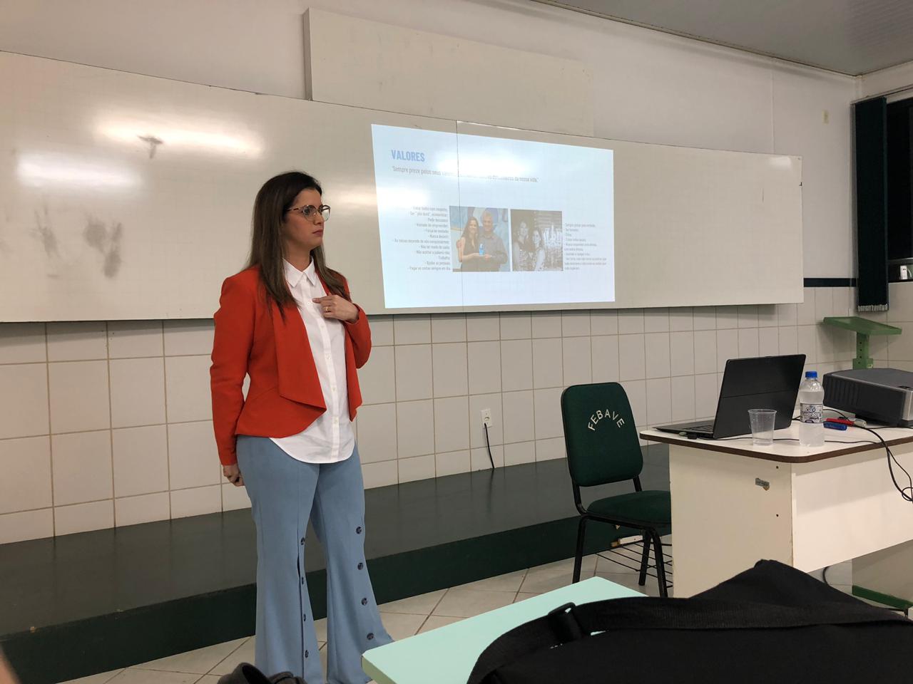 Thayni da Silva Librelato foi uma das palestrantes. Ela é membro do Conselho de Administração da Librelato S.A. Implementos Rodoviários e presidente da Associação Empresarial de Orleans – ACIO. O outro palestrante foi Mário Coan, vice-prefeito de Orleans e gerente da empresa Copozan.