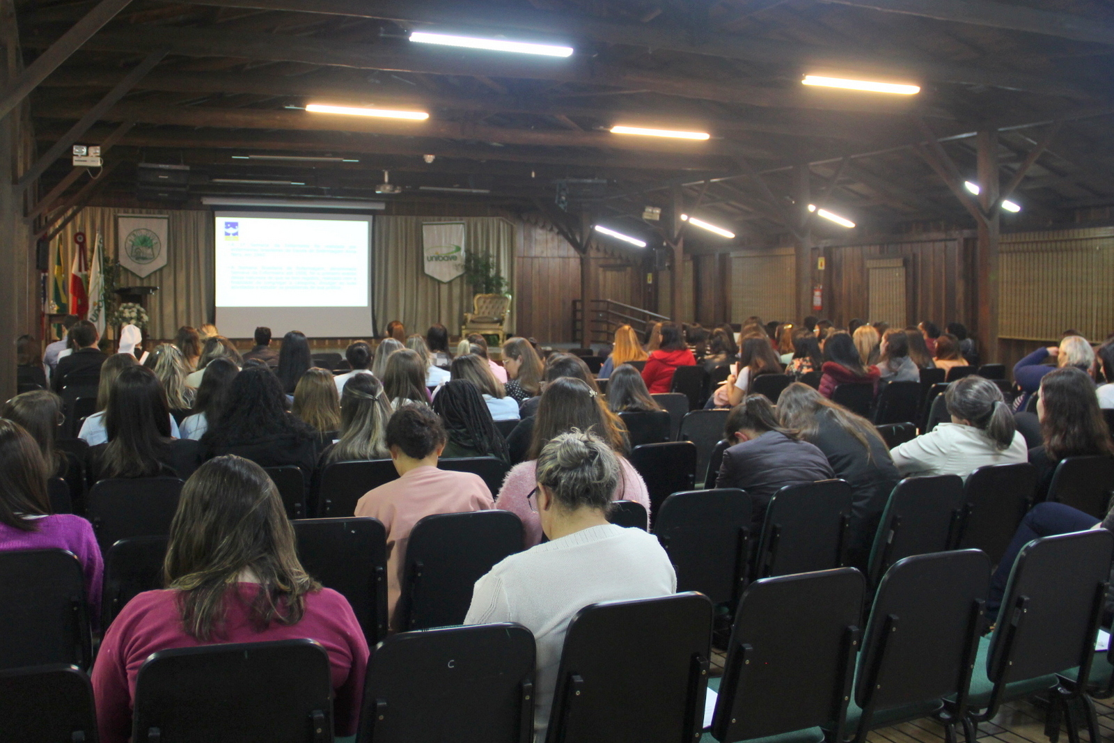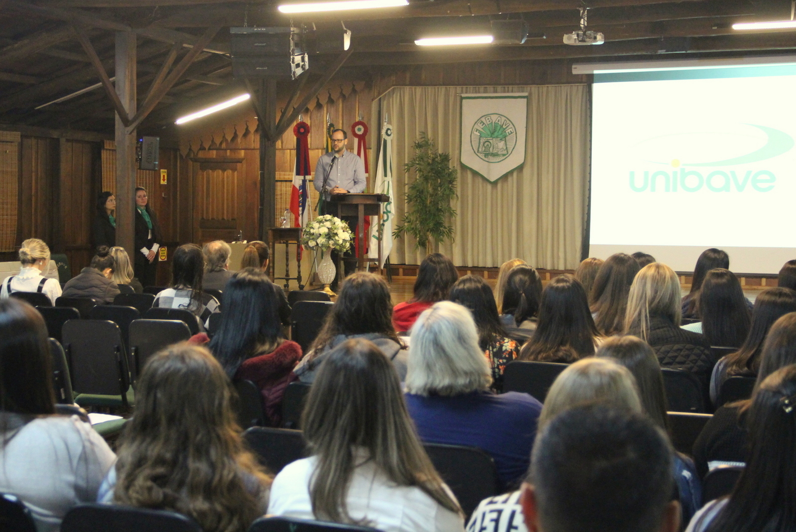O vice-reitor do Unibave, Luiz De Noni, abriu a noite, exaltando a profissão e os profissionais, dizendo que o enfermeiro acompanha o dia a dia do paciente na sua dor e na angústia dos seus familiares. “Aproveitem para trocar experiências e adquirir conhecimento”, afirmou em seu discurso aos presentes.