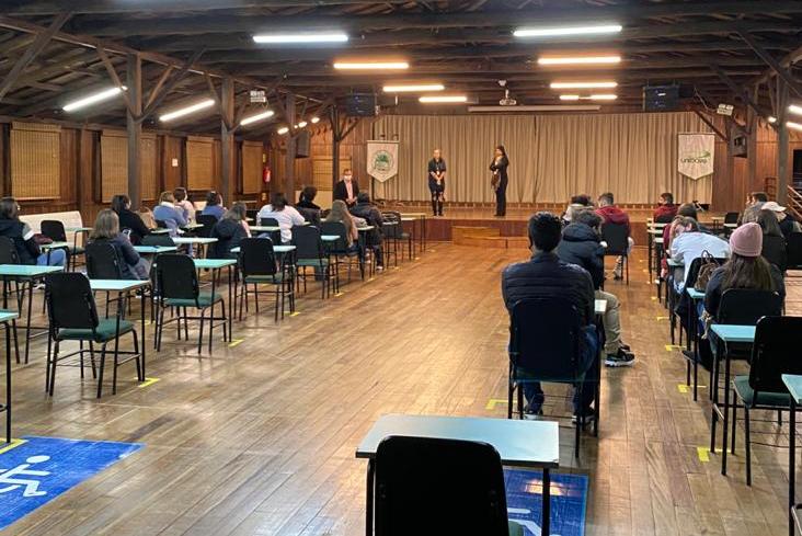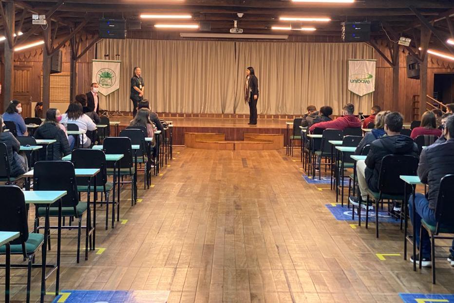 A importância da alfabetização das crianças com deficiências auditivas, a experiência de docente e as barreiras impostas pela sociedade do dia-dia, em relação a comunicação, foram temas abordados, segundo o professor da disciplina de libras Fellippe D’ Oliveira, que contou com a participação da intérprete de Libras do Unibave, Andriele Geremias, que fez a tradução do encontro.