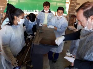 Após a palestra, os estudantes, representantes de cada turma, participaram da oficina de Conservação de Acervo Escolar, ministrada pelo museólogo e professor do Unibave, Idemar Ghizzo. A atividade foi acompanhada pela professora e gestora da unidade escolar, Simoni Nogueira Feltrin, e pela professora responsável pelas turmas, Juliana Geraldi Yamaguti, que dará sequência às atividades em sala de aula. O resultado do trabalho será apresentado no Unibave na Comunidade, que será no dia 09 de junho no centro de Urussanga.