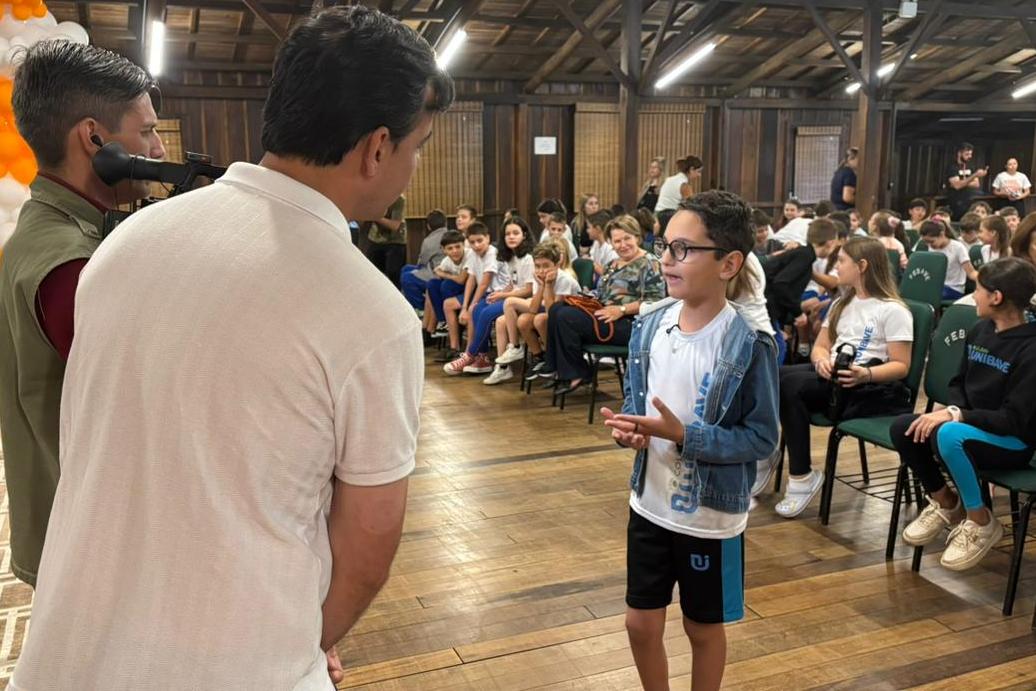 Quase 200 estudantes de Orleans estiveram no Centro de Vivências do Museu ao Ar Livre Princesa Isabel, nesta sexta-feira (27/02), para acompanhar a exibição do documentário “Aurora e o Mar Sem Volta”. A produção, gravada nos espaços do Museu, integrou as ações que celebraram os 150 anos da imigração italiana em Santa Catarina e foi ao ar na NDTV para todo o Estado no dia 25 de dezembro.