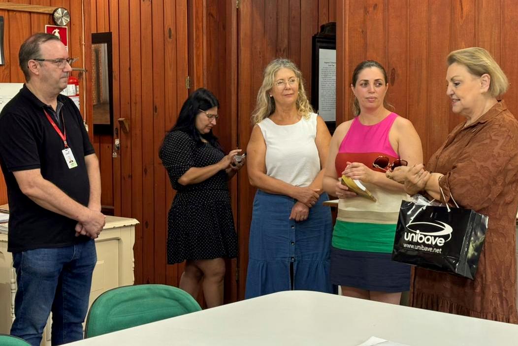 No Museu e no Unibave, a presidente foi recebida pelo pró-reitor de Administração e Inovação, Dimas Ailton Rocha, pela diretora Valdirene Dorigon, além de outros colaboradores do Museu e do Unibave. A visita ao município de Orleans e à instituição ocorreu a convite do músico orleanense Paulo Vick Debiasi.